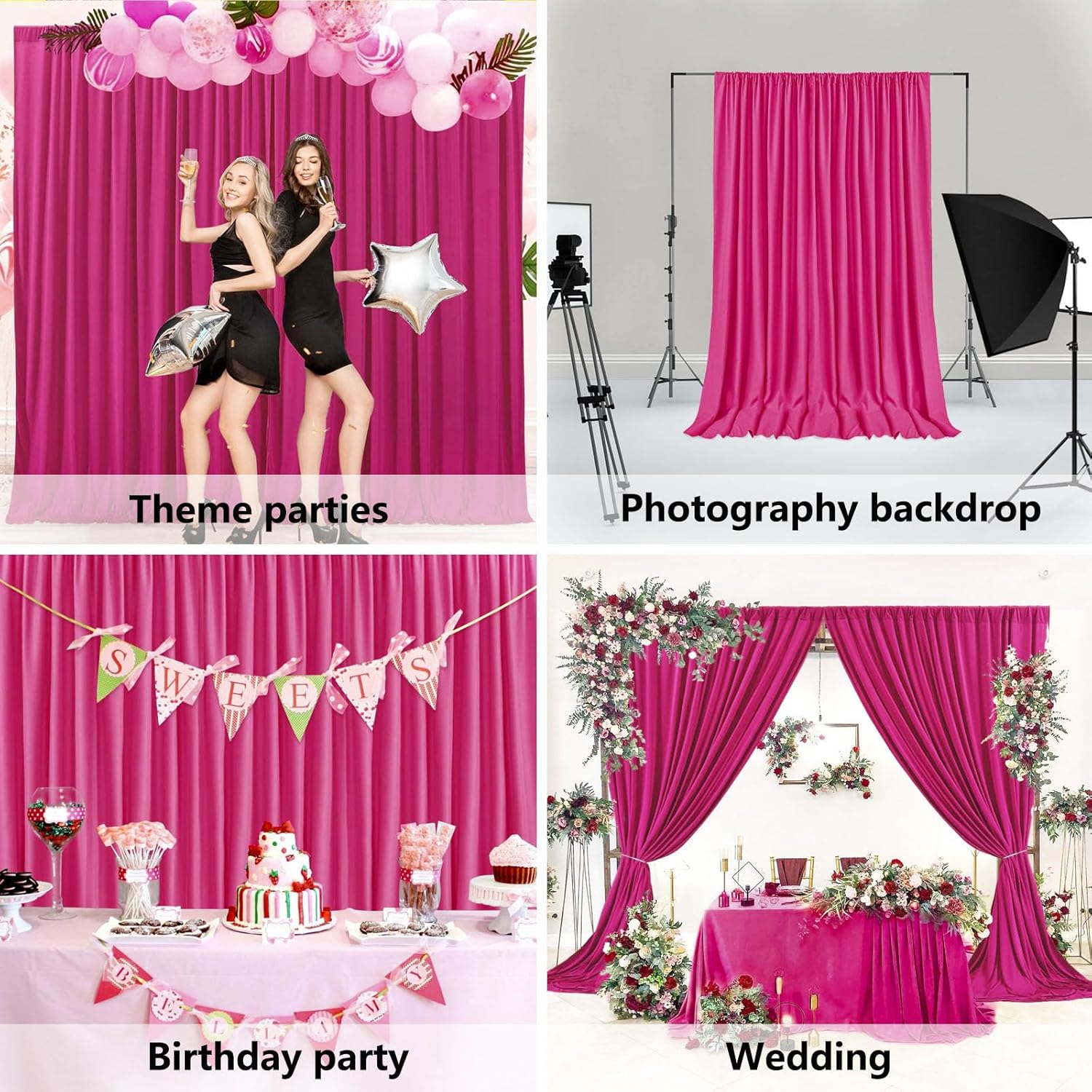 10 x 7 Feet Fuschia Backdrop Curtain for Partie, Background Curtains for Photoshoot, Birthday, Wedding, Halloween, Thanksgiving, Christmas, New Year Party Decorations 5Ft x 7Ft, 2 Panels
