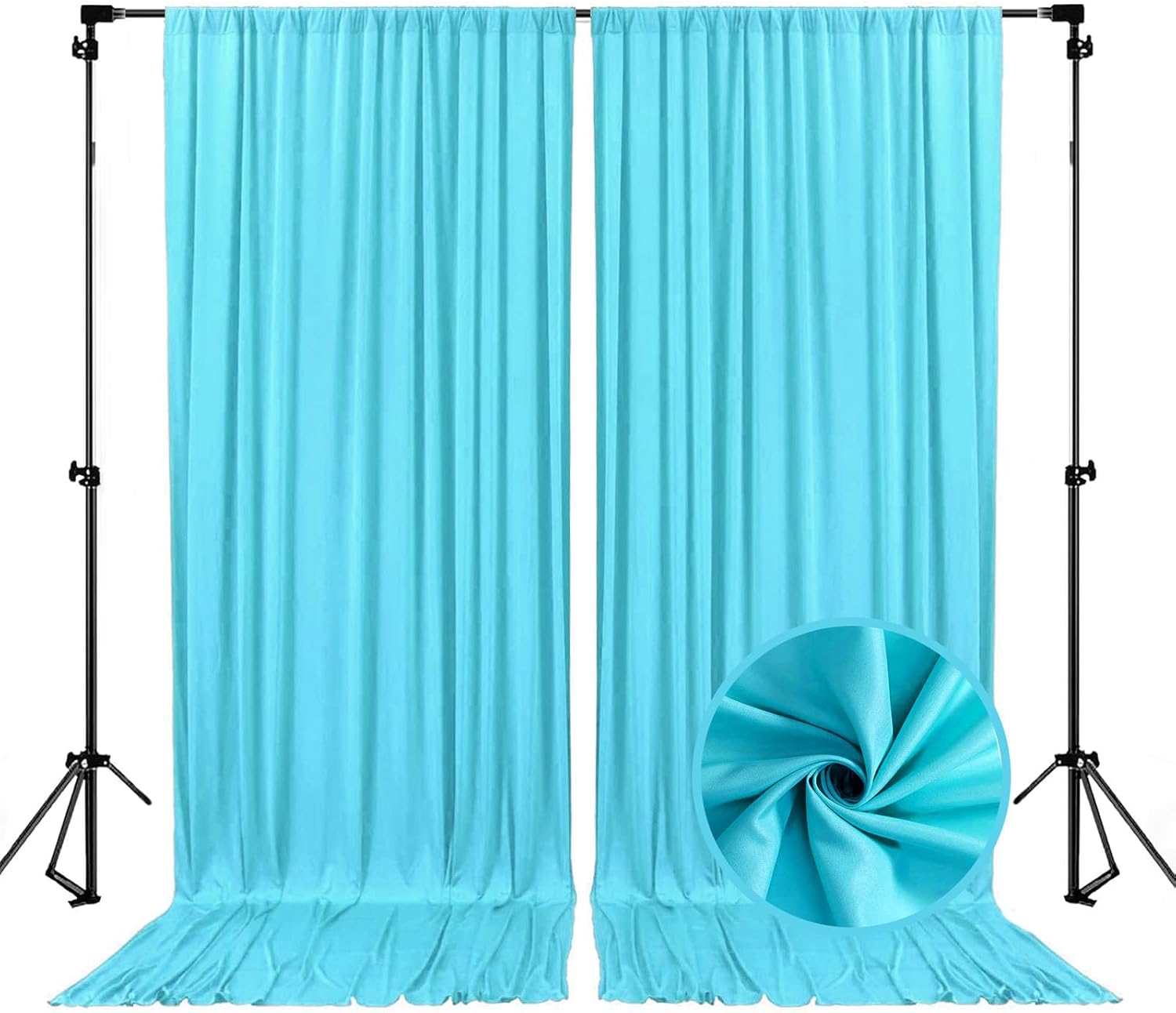 - 【Package and Size】2 soft fabric backdrop curtains per package. Each Backdrop Drapes measures 60" wide x 84" height(5ft x 7ft). they were not in one width so you can decide how narrow or wide you want the backdrop by tightening or stretching.