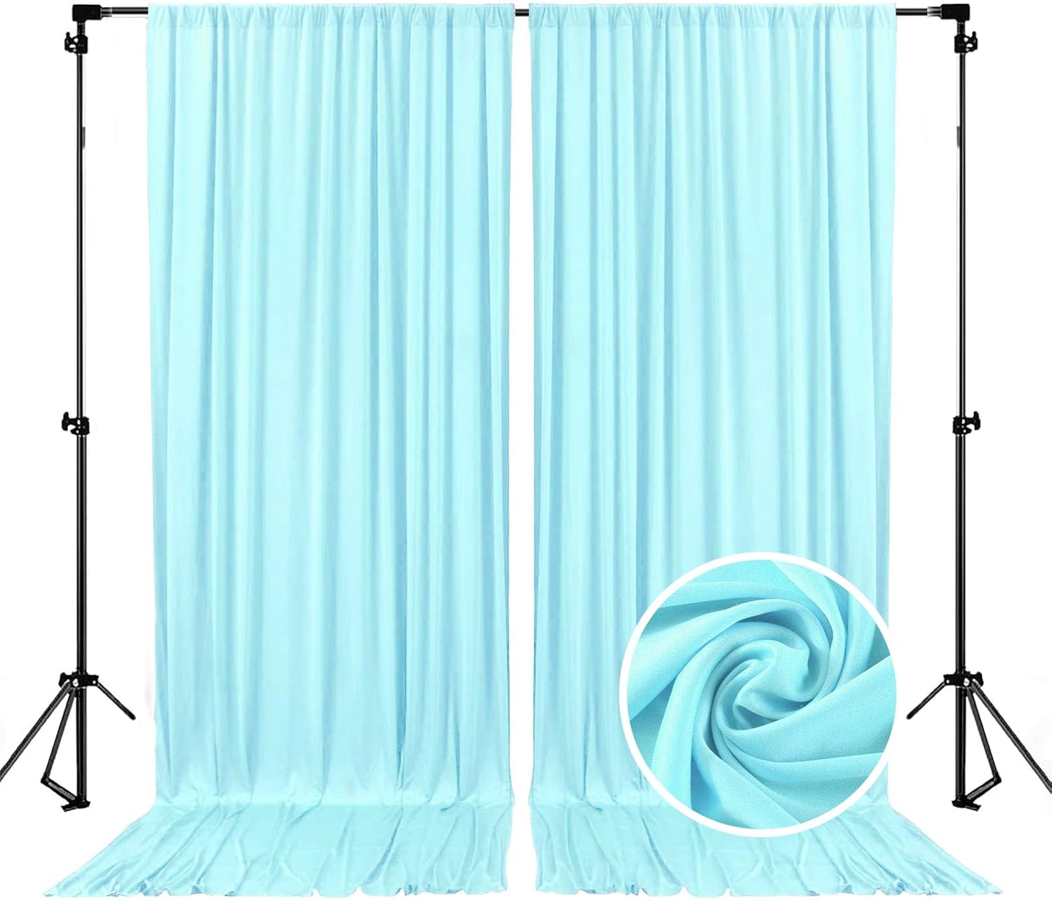 10 x 7 Feet Light Blue Backdrop Curtain for Partie, Background Curtains for Photoshoot, Birthday, Wedding, Halloween, Thanksgiving, Christmas, New Year Party Decorations 5Ft x 7Ft, 2 Panels
