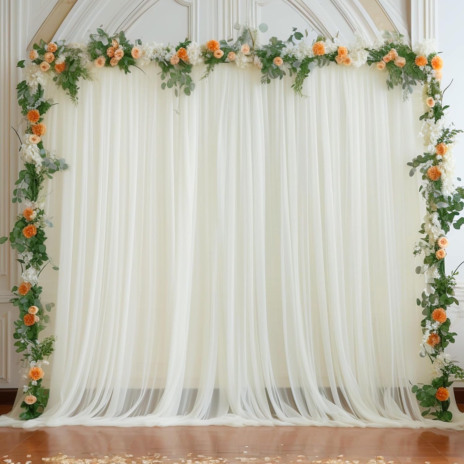 - SHEER BACKDROP CURTAINS: Ivory tulle backdrop curtain is perfect for making a background backdrop to a sweets table or for a photo area when decorating a party. Used as backdrop curtains for parties and baby shower decorations along with balloons and fairy light or wrapped around the wedding arch