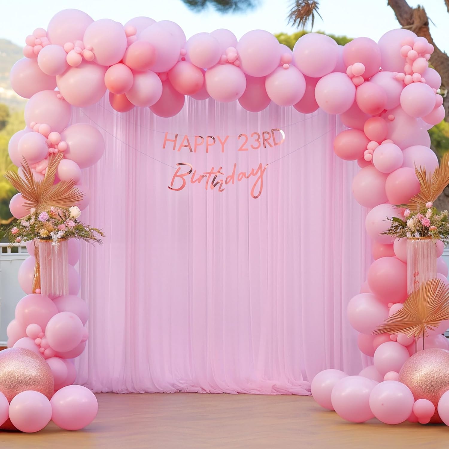 - SHEER BACKDROP CURTAINS: Pink tulle backdrop curtain is perfect for making a background backdrop to a sweets table or for a photo area when decorating a party. Used as backdrop curtains for parties and baby shower decorations along with balloons and fairy light or wrapped around the wedding arch