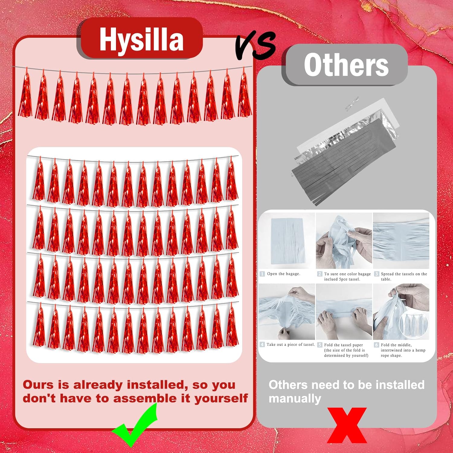 - 【Perfect Party Decoration】The red tinsel garlands are designed in a metallic Fringe, bright, and beautiful, at the same time, they shine in the sun, and these gorgeous tassel garlands create a wonderful backdrop or centerpiece for your party space. and bring you, your family, and your friend's good Visual effects. your party many emotional and touching moments where a lot of pictures will be taken and everybody will have a wonderful time together.