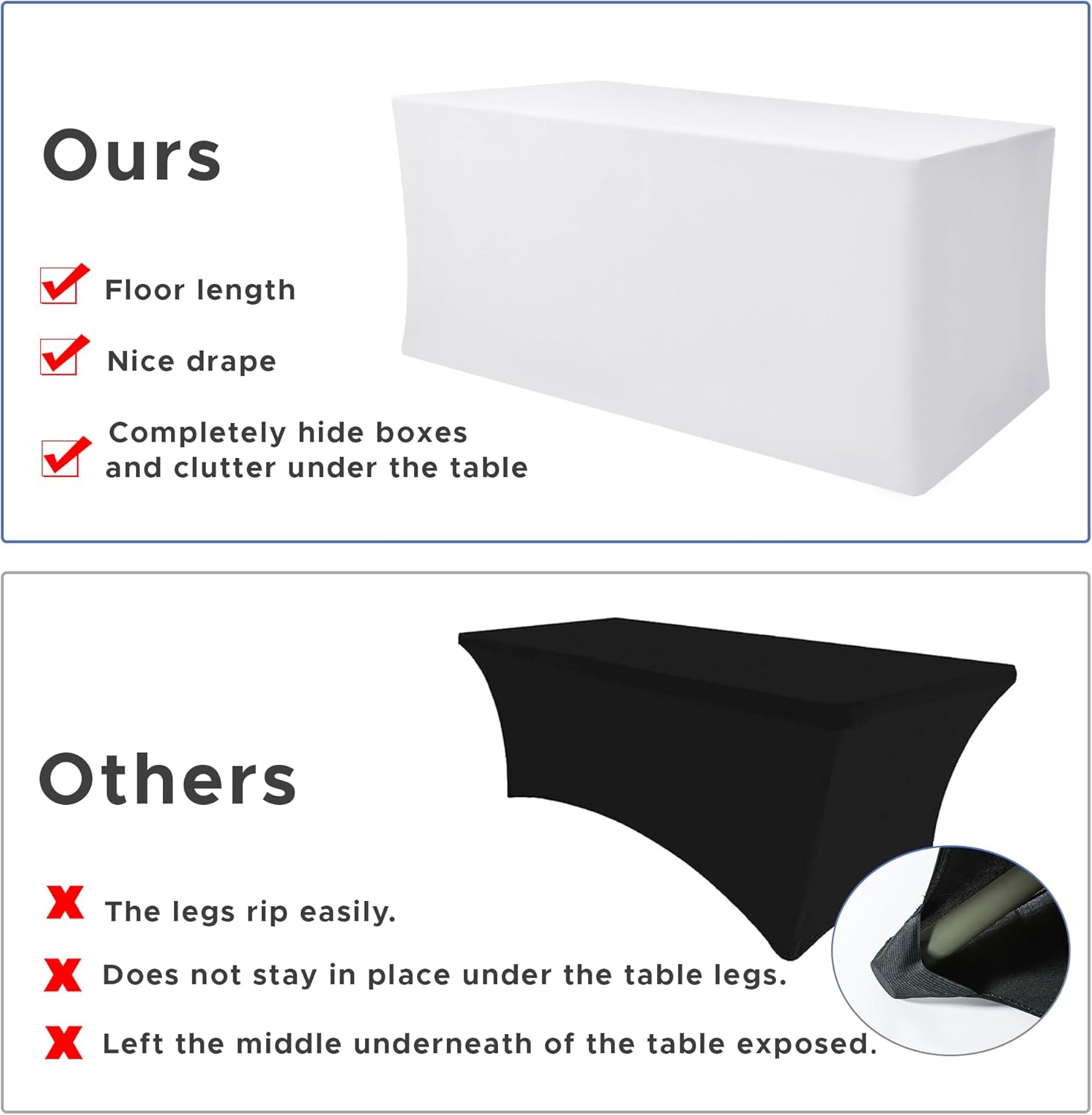 - The floor length fitted shape easily conceals unattractive table legs, extra supplies, power cords, or other items stored underneath. Ideal for 4 ft, 5 ft, 6 ft, 8 ft tables.