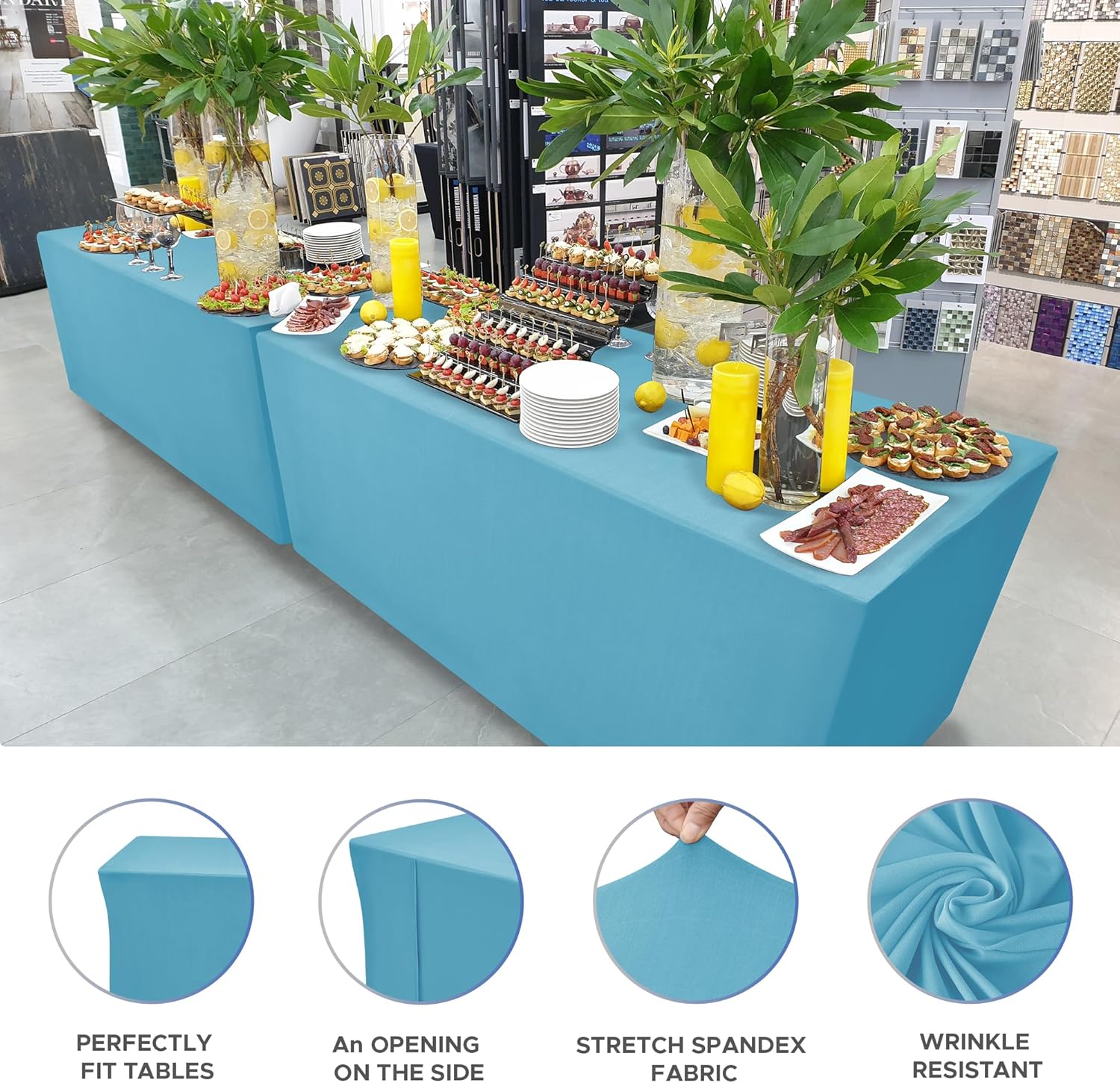 Nasitos Fitted Table Covers Stretch Spandex - 72 x 30 Inch - 2 Pack Turquoise Rectangle Table Clothes for 6 Foot Folding Tables, Wrinkle Resistant Tablecloths for Parties, Trade Show, Birthday