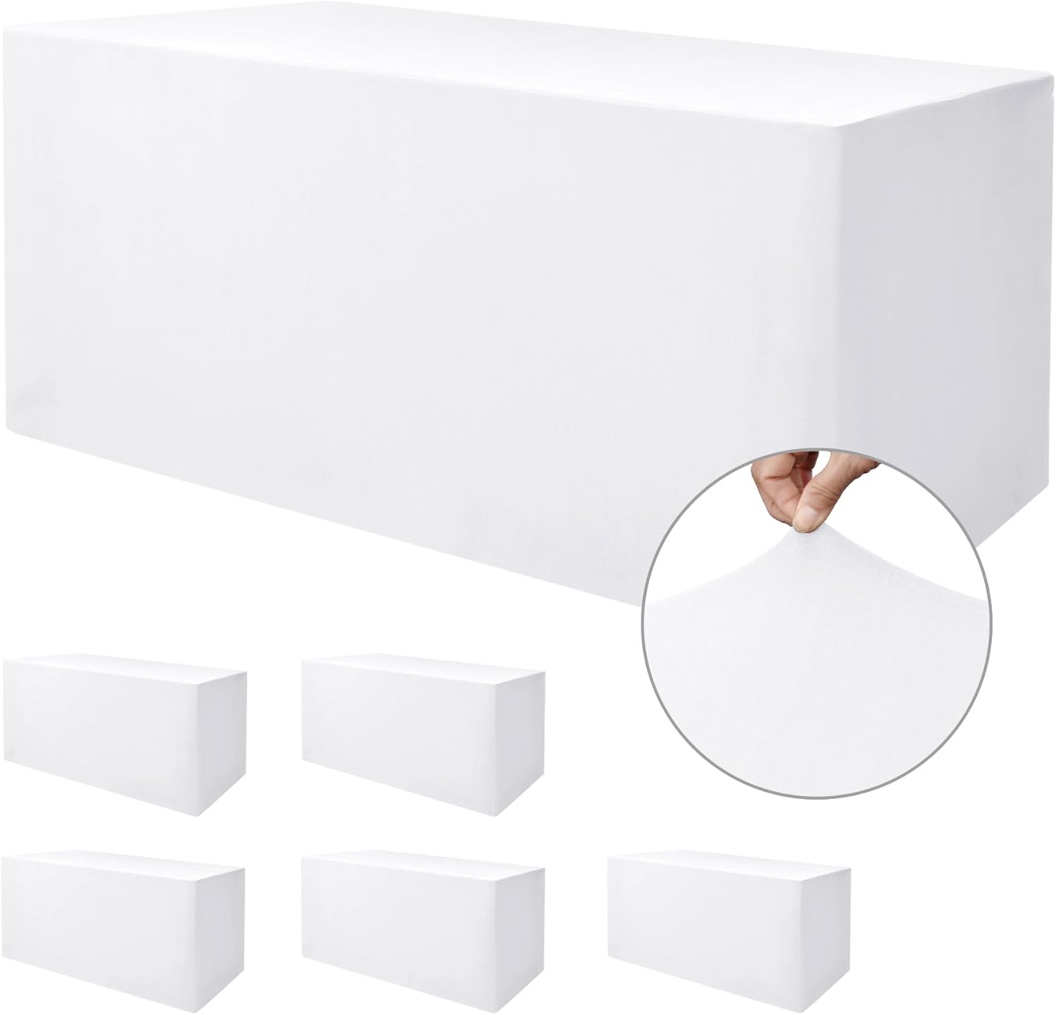 Nasitos Spandex Fitted Table Clothes, 6 Pack - 48 x 24 Inch - White Rectangle Tablecloths for 4 Foot Tables, Fabric Table Cover Protector for Folding Table, Parties, Craft Show, Trade Show