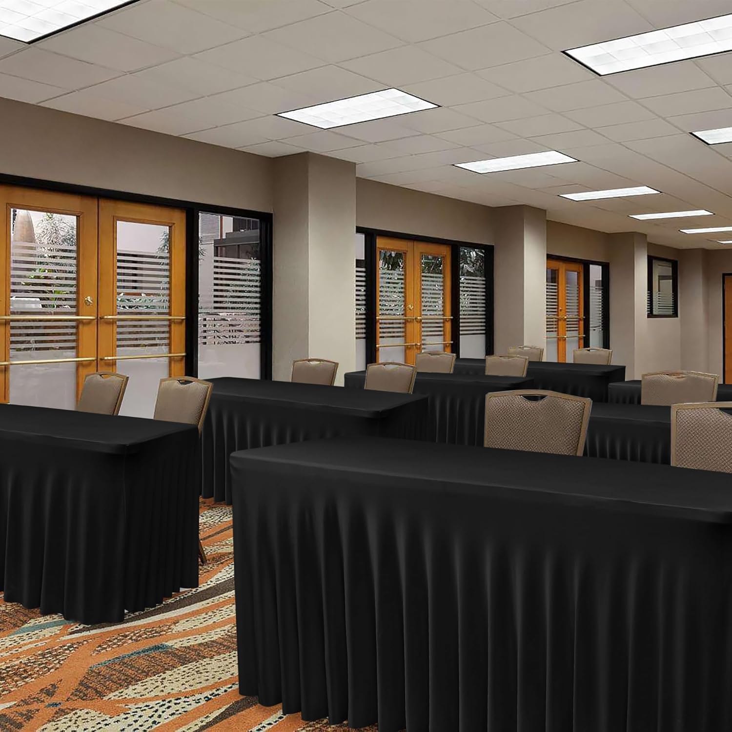 Nasitos Black Table Skirt for 8 Foot Rectangle Tables, 4 Pack - 96 x 30 Inch - Stretch Spandex Fitted Table Clothes, Fabric Table Covers Cocktail Tablecloths for Party, Banquet, Birthday