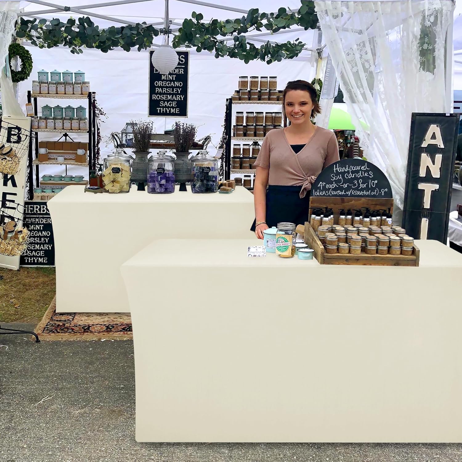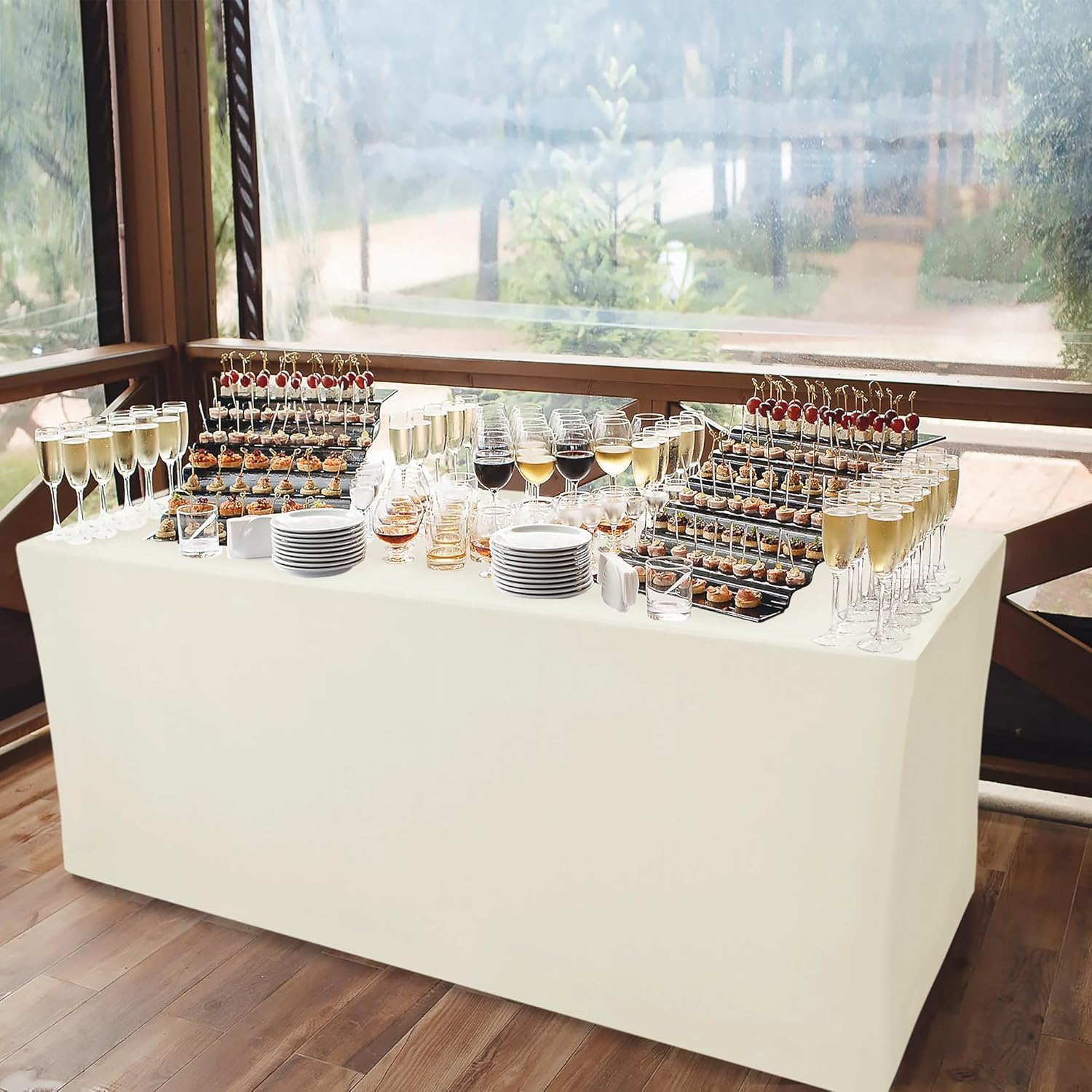 Nasitos Fitted Table Covers Stretch Spandex - 96 x 30 Inch - 2 Pack Beige Rectangle Table Clothes for 8 Foot Folding Tables, Fabric Tablecloths for Parties, Trade Show, Craft Show, Birthday