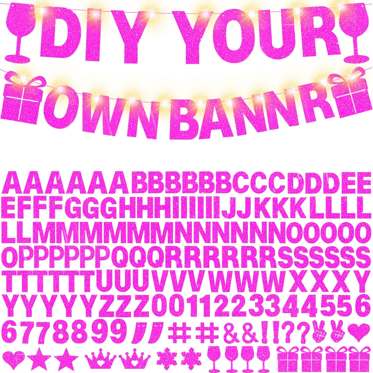 175Pcs DIY Glitter Customizable Banner Kit Custom Banner DIY Happy Birthday Letters Personalized Banners Decor for Christmas Baby Shower Birthday Party Decorations Supplies(Glitter Rose Pink)