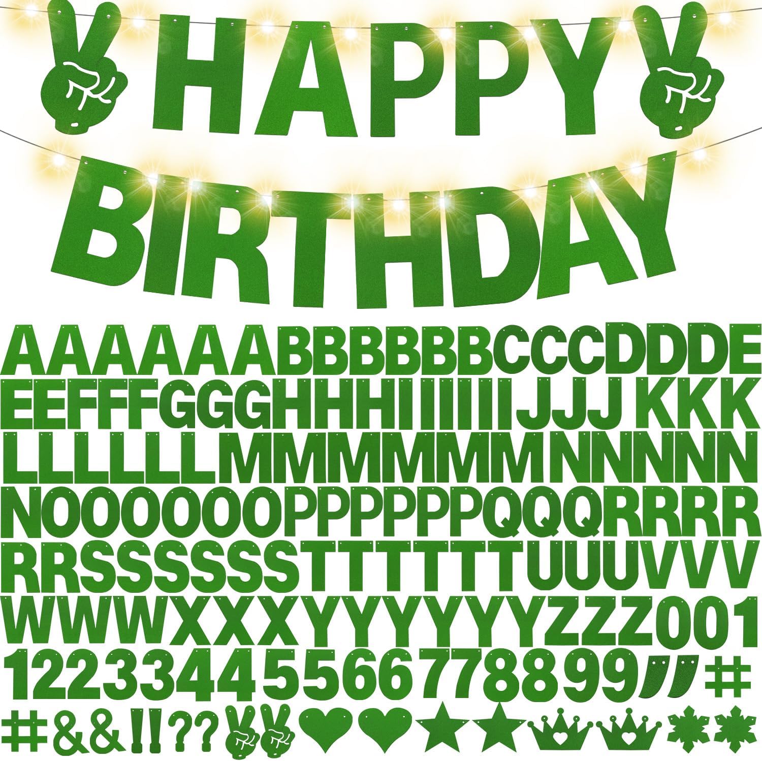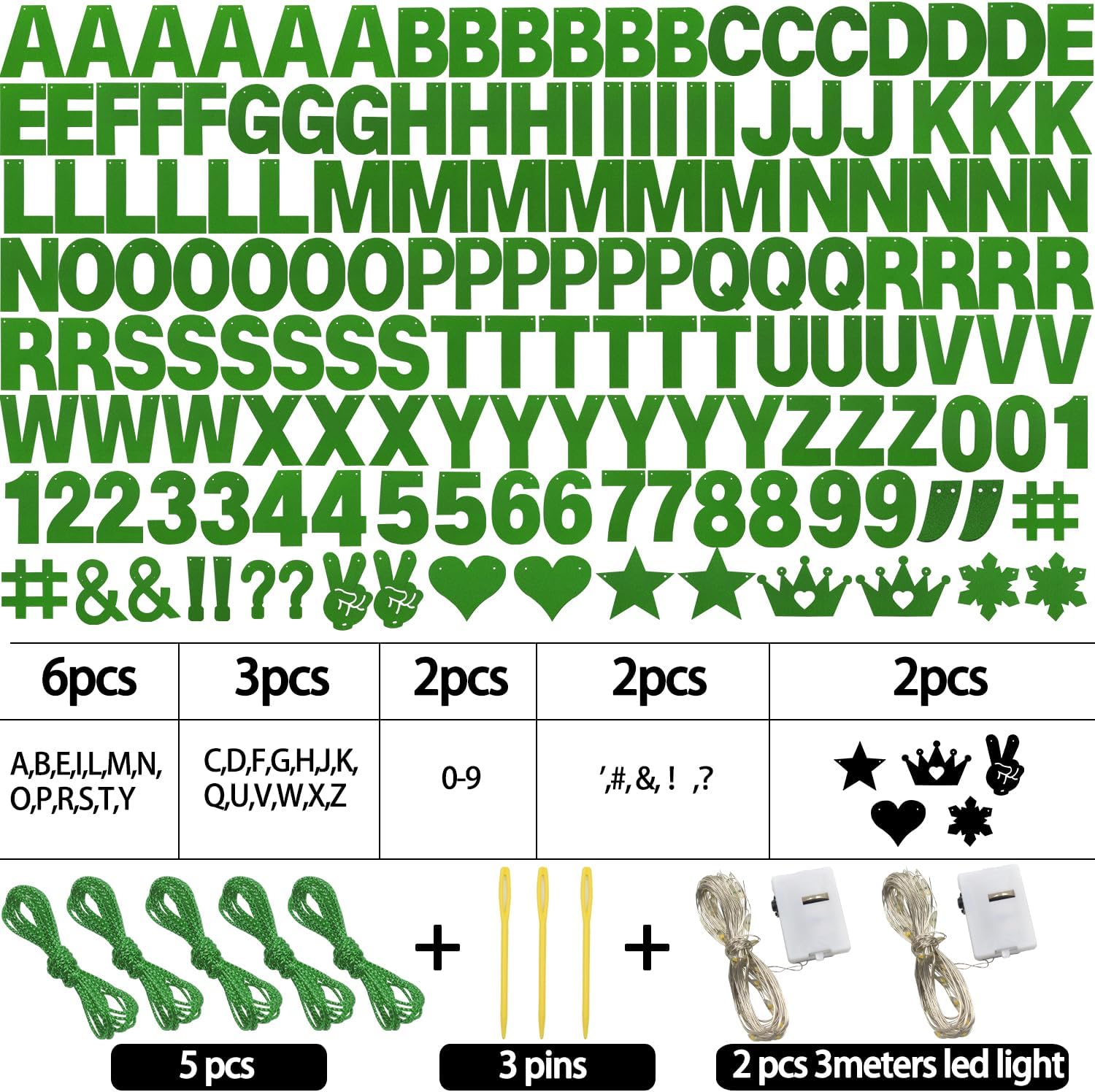 - 【What you can GET】167 pieces of letters and numbers Banner Kit, including 6pcs'A,B,E,I,R,T,L,M,N,O,P,S,Y' letters, 3pcs 'C,D,G,H,U,V,W,F,J,K,Q,X,' letters, 2pcs '0-9' numbers,2pcs' #,',&, !,? ',and 2 ‘stars, crown,snow, hearts,Yeah’ come with 5 ropes ,2 LED light strings and 3pcs Plastic Sewing Needles ; Nice combination meet your various parties decorative demands,exquisite decorations can make your party more attractive!