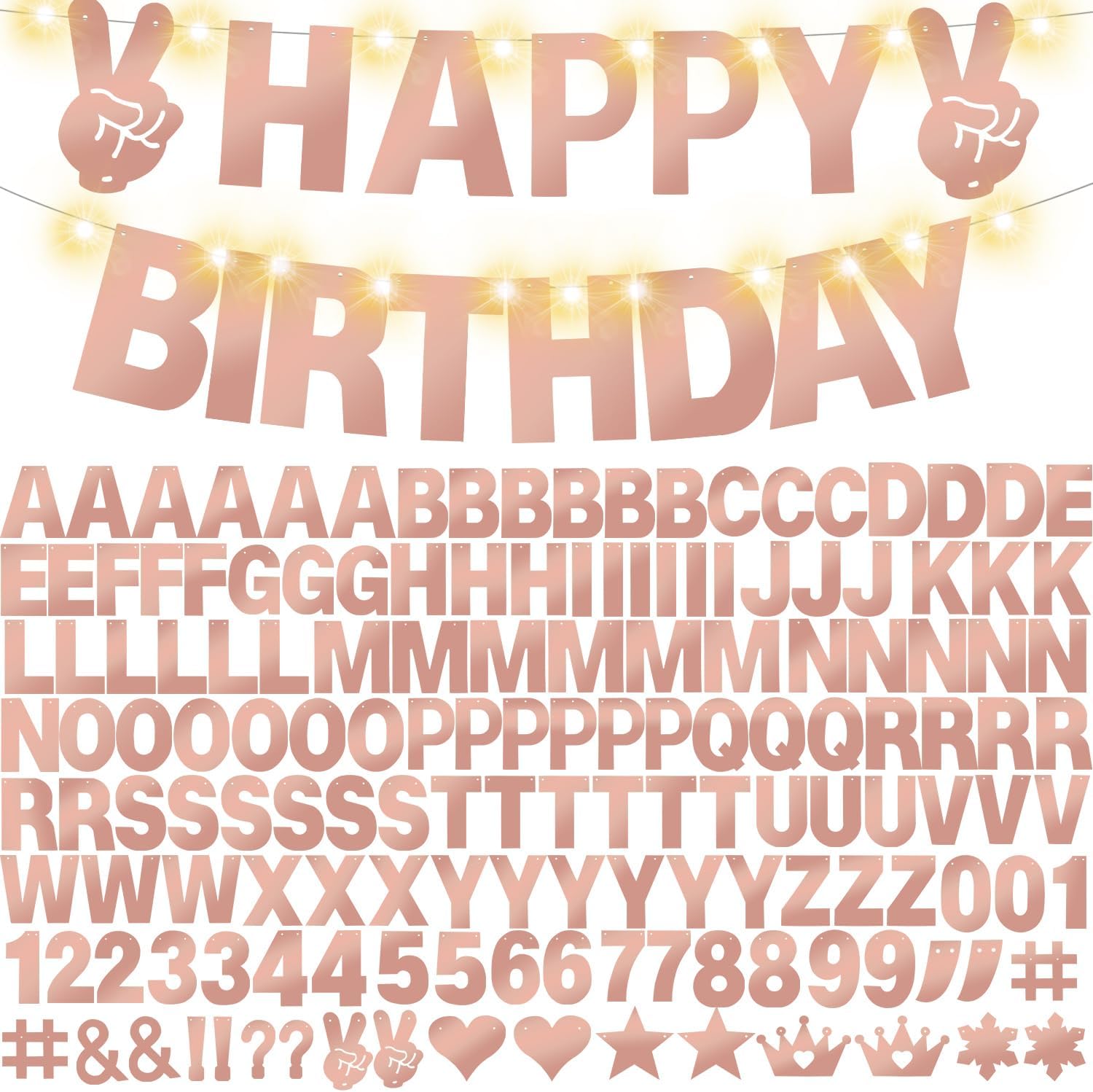 167Pcs DIY Glitter Customizable Banner Kit Happy Birthday Custom Letters Banner Happy New Year Personalized Banners Decor Christmas Baby Shower Birthday Party Decorations Supplies(Shiny Rose Gold)