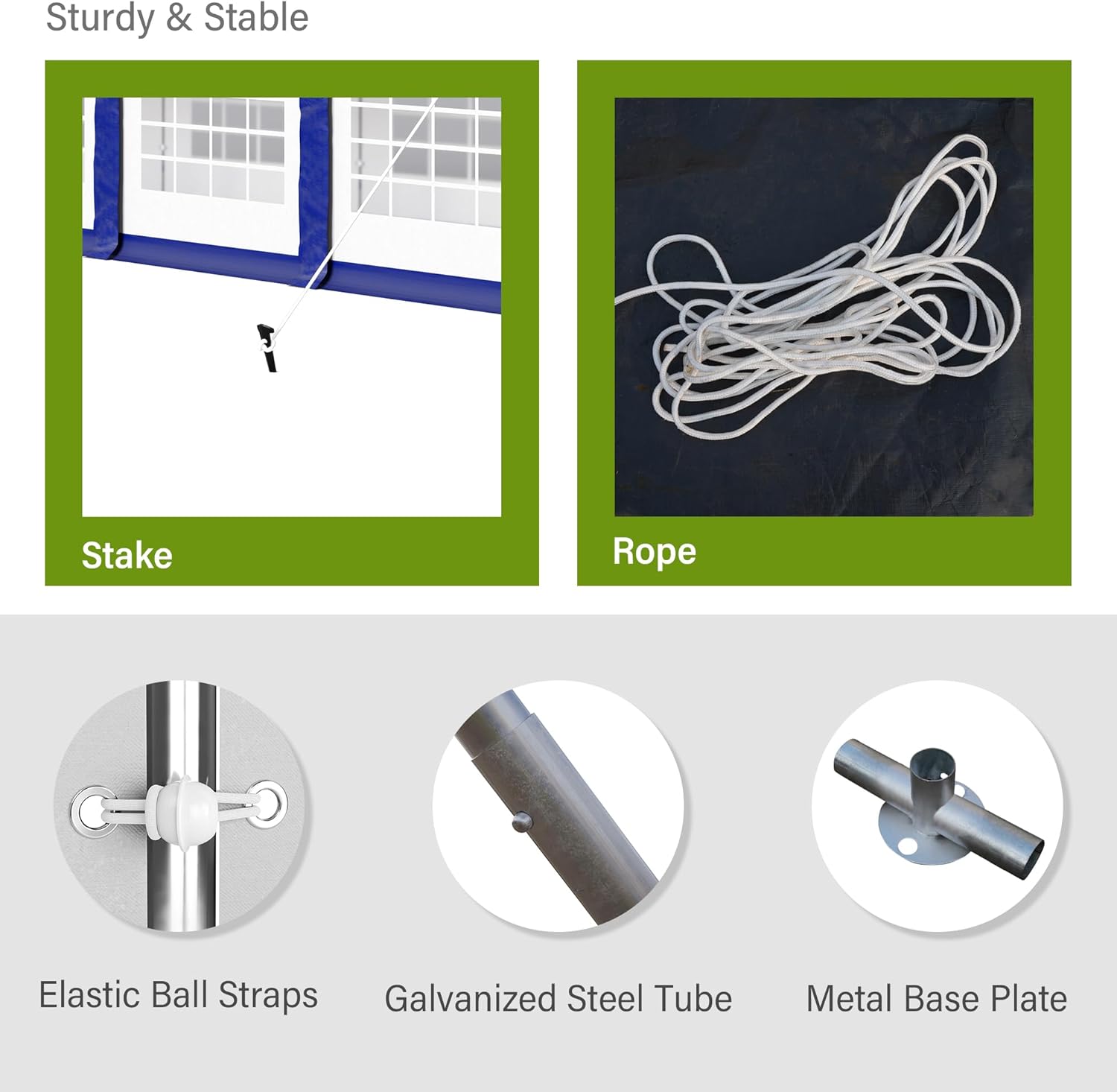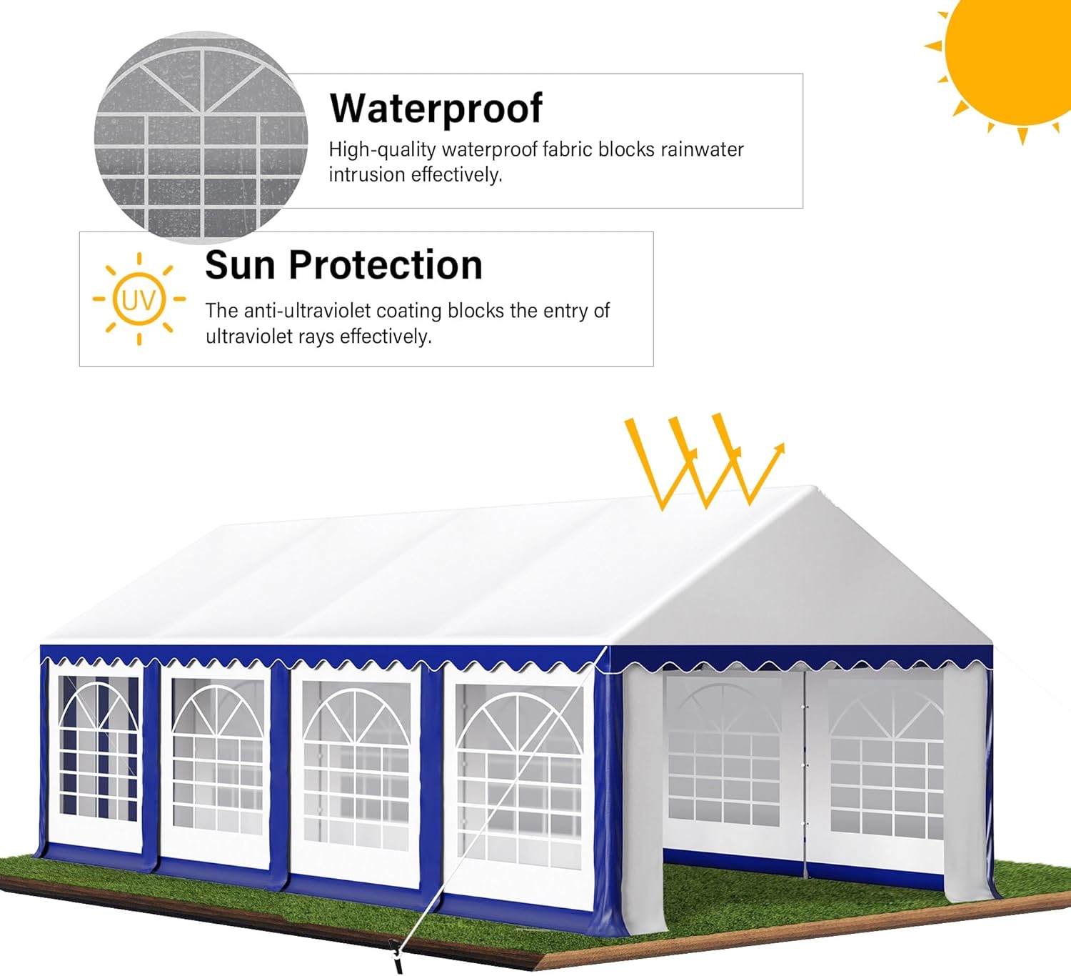 - Upgraded Galvanised Frame: The party tent is framed with heavy-duty thickened 38 mm upgraded galvanized steel tubing for durability. The surface is powder coated to prevent rust and corrosion