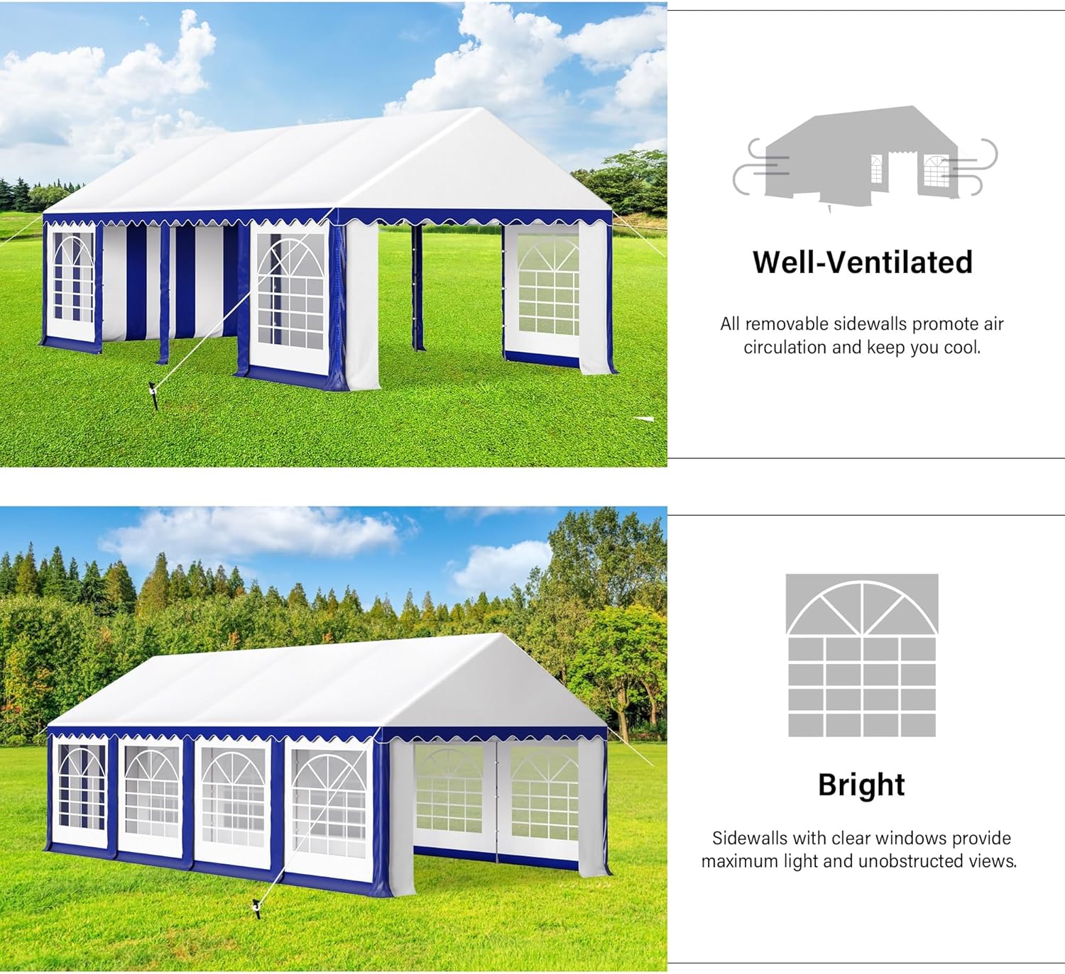 HERA'S PALACE 13'x 26' Outdoor Tents for Parties Large Canopy Tent with 10 Removable Sidewalls Heavy Duty Party Tent for Graduation Wedding and Birthday (Blue)