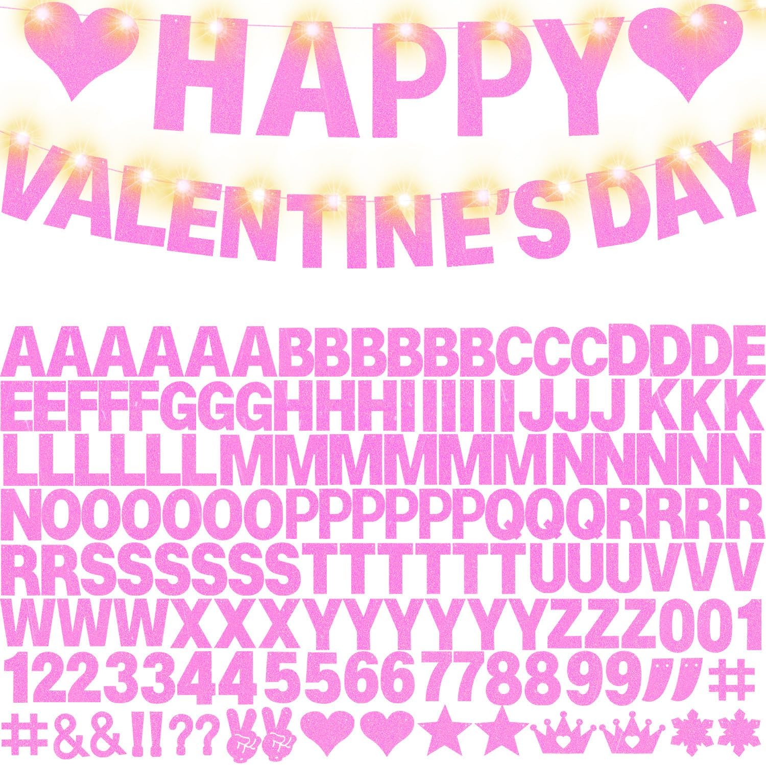 167Pcs DIY Glitter Customizable Banner Kit Happy Birthday Letter Banners Happy Valentine's Day Banners Love Heart Personalized Banner Decor Birthday Party Decorations Supplies(Glitter Light Pink)