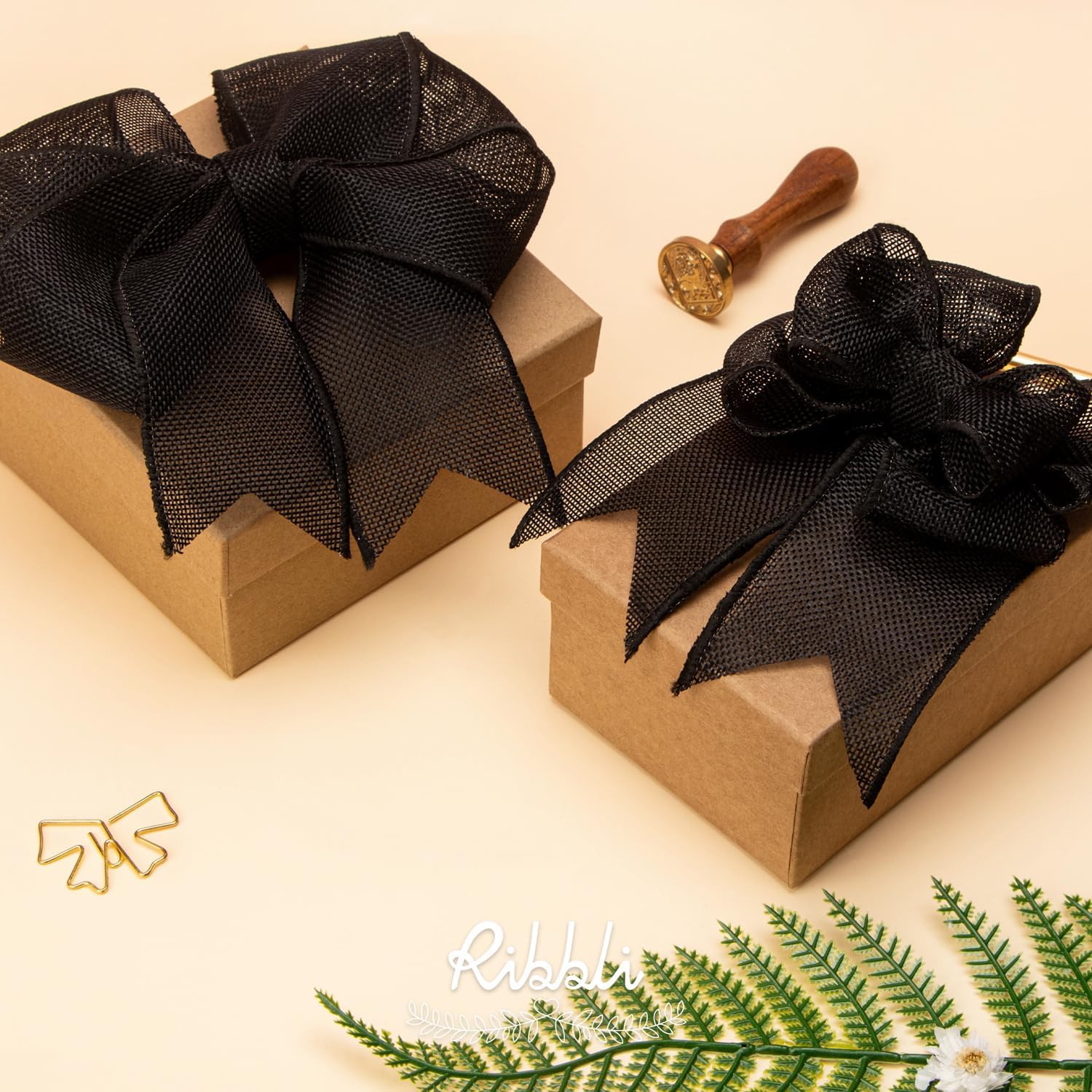 Ribbli Black Burlap Wired Ribbon, 2-1/2” Inch x Continuous 20 Yard, Black Wired Ribbon for Wreaths,Big Bows,Tree Decoration,Outdoor Decoration