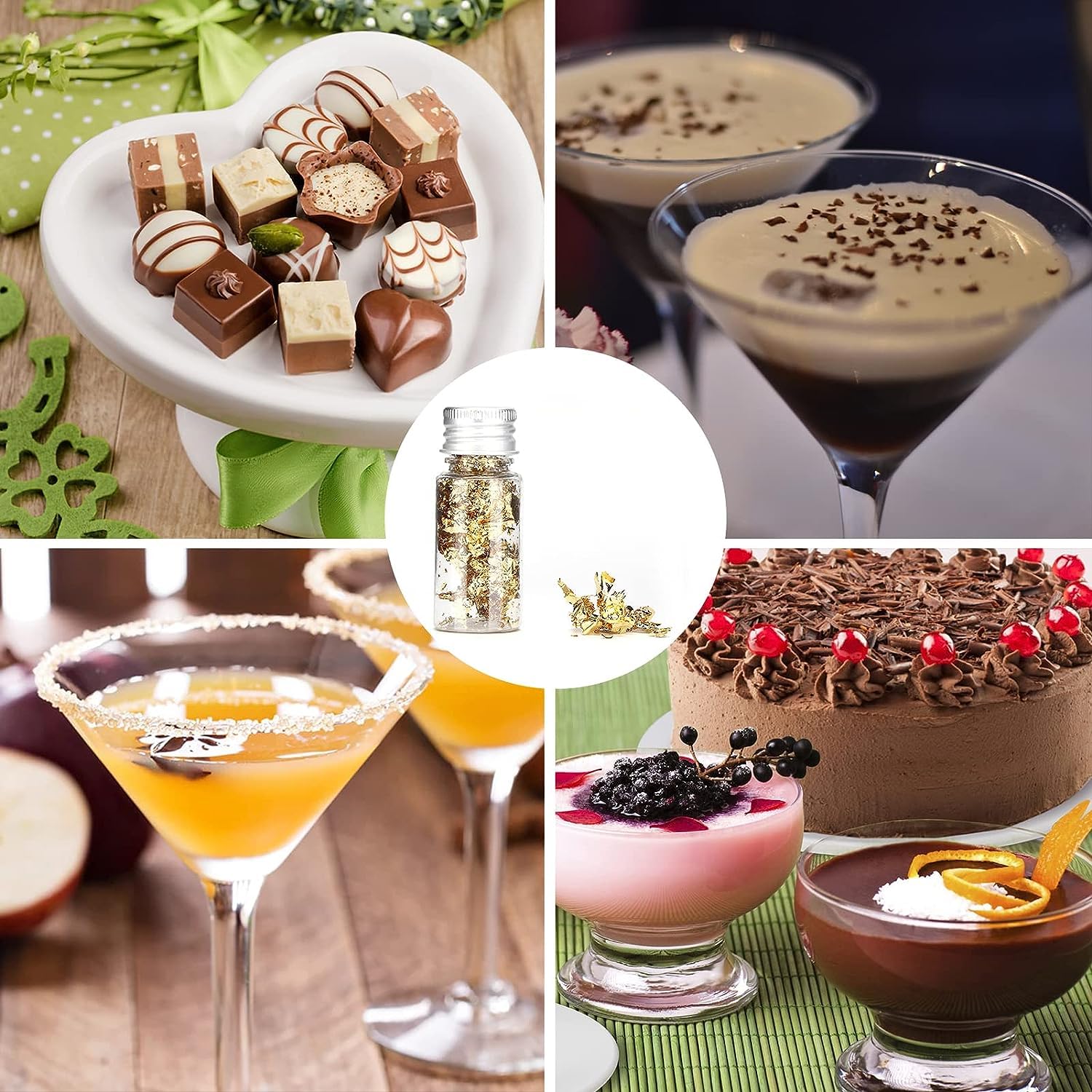- 【Food & Drinking Decoration Gold Foil Sheets】Edible gold foil flakes can make your cake, candy, desserts, cocktails, etc. become more refined and increase appetite. And edible gold leaf will add a touch of luxury to your dining table. When you having a birthday, wedding, encouragement anniversary party, such special occasions require special food and decorations, can chose this gold edible leaf decorations food.