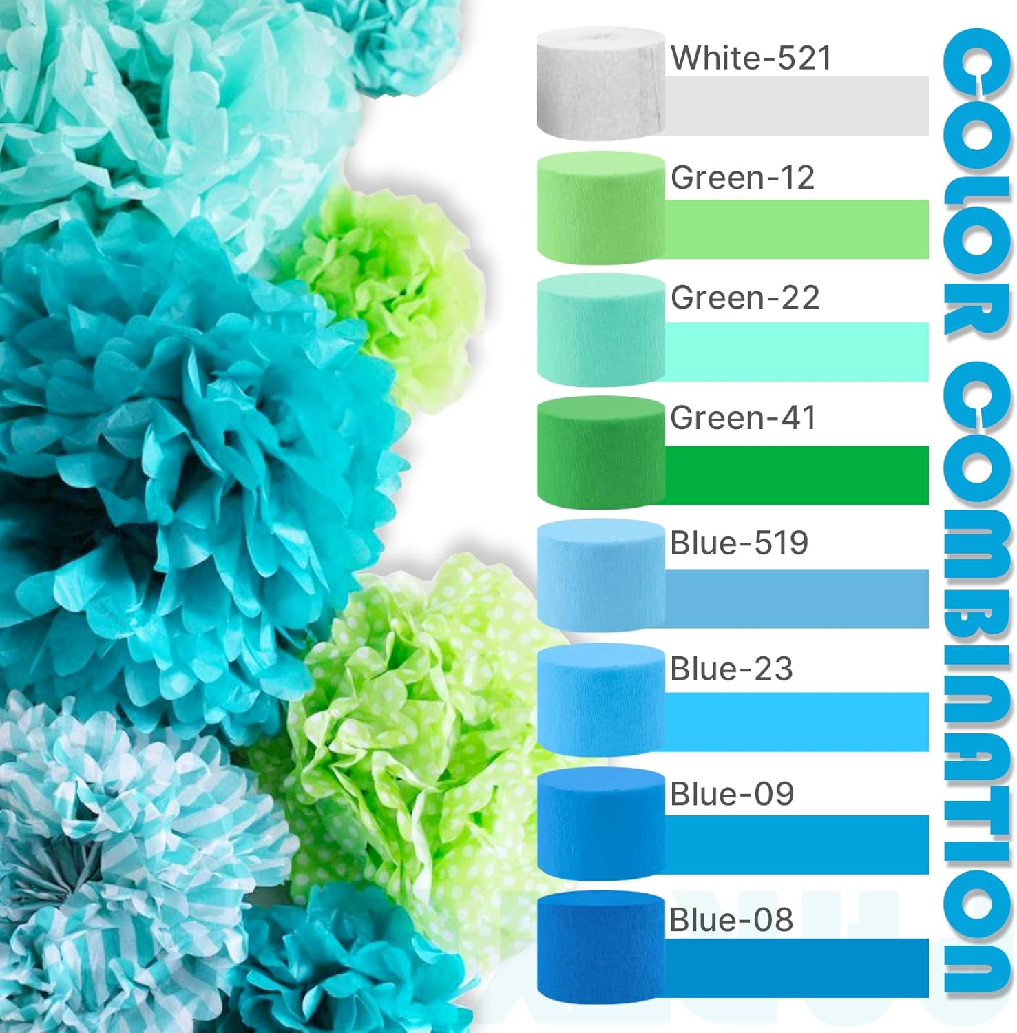 - Package Included:You will receive 4 precisely rolled party crepe paper in pearl blue colors, each roll is 1.8 inch x 82 ft, these pearl blue crepe paper streamer rolls are enough for your baby shower decoration and birthday decoration needs