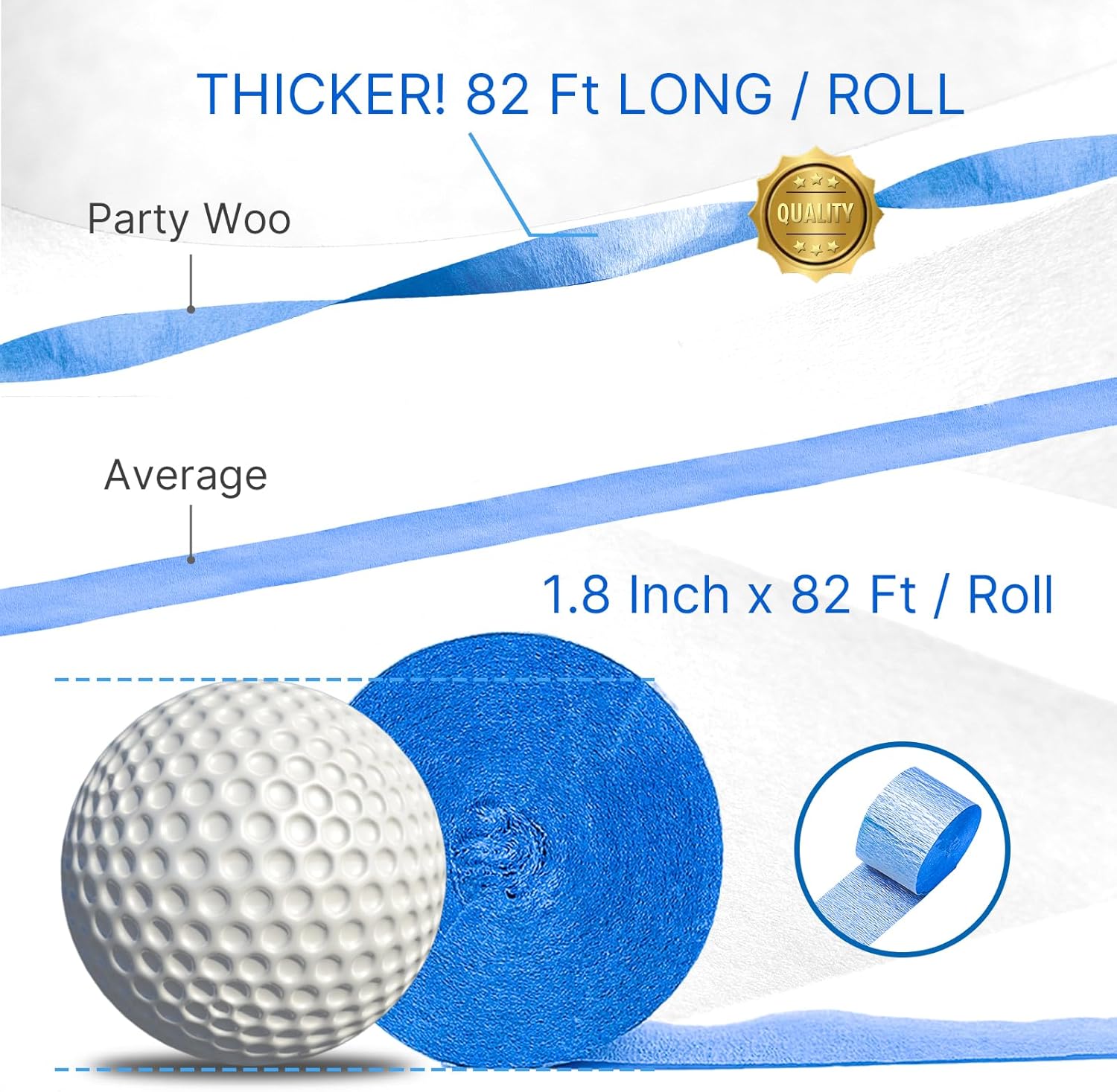 PartyWoo Blue Crepe Paper Streamers 4 Rolls 328 ft Pack of Dark Light Pastel Blue Crepe Paper for Baby Shower Gender Reveal Graduation Anniversary Birthday Party Decorations (1.8 Inch x 82 Ft/Roll)