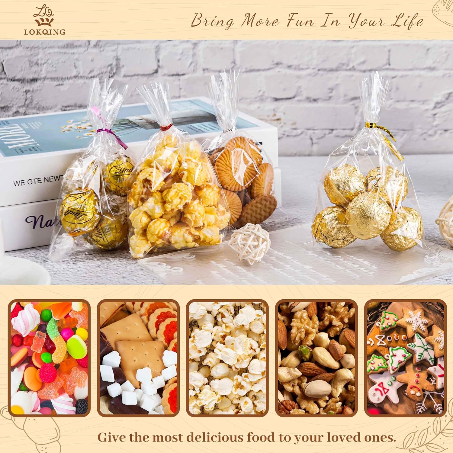 LOKIQNG Cellophane Bags Plastic Treat Bag Clear Cookie Candy Bags with Twist Ties for Party Favor Bag(200PACK, 4x6inch)