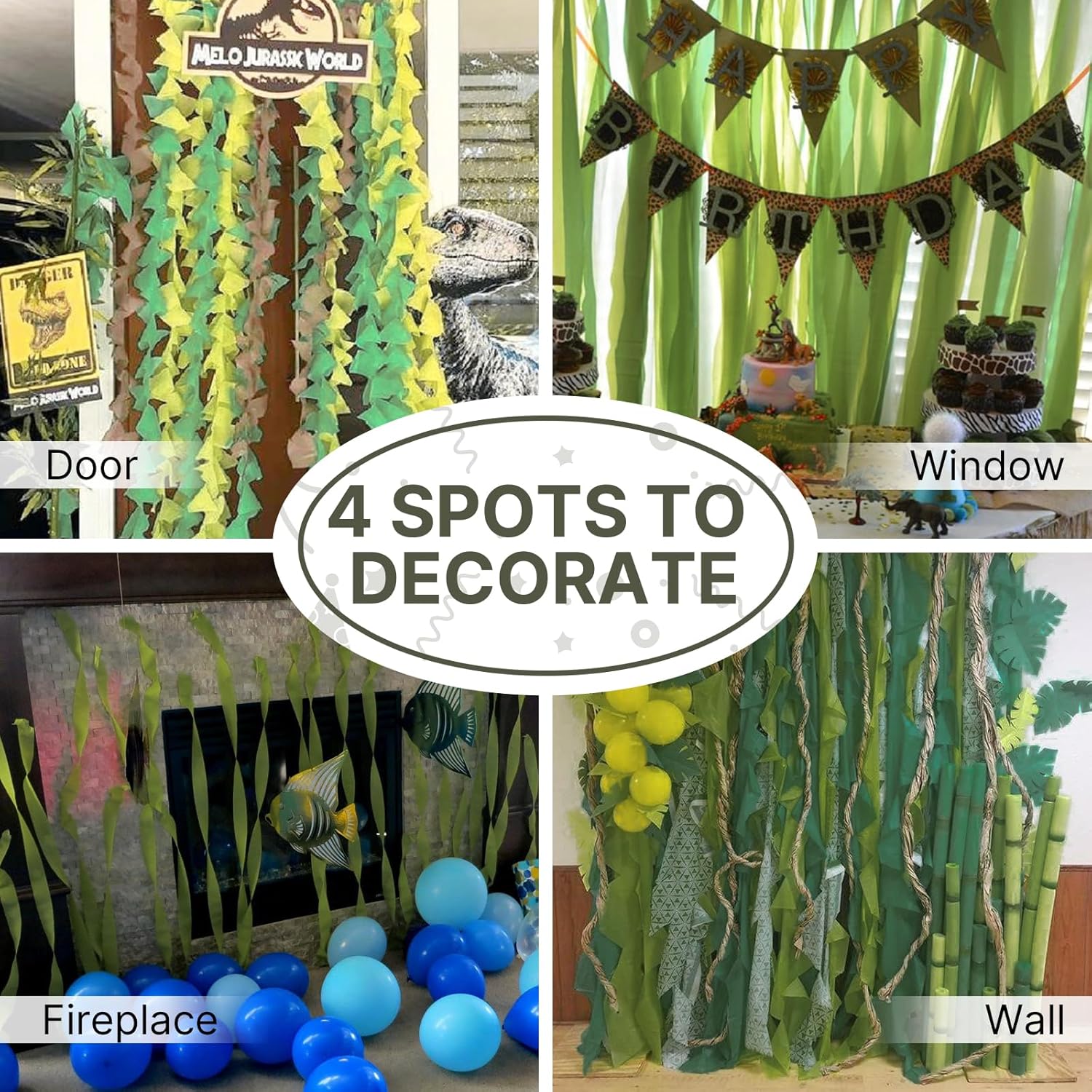PartyWoo Sage Green Crepe Paper Streamers 4 Rolls 328 ft Pack of Hunter Sage Green Gold Sand White Crepe Paper for Jungle Safari Graduation Birthday Party Decorations (1.8 Inch x 82 Ft/Roll)