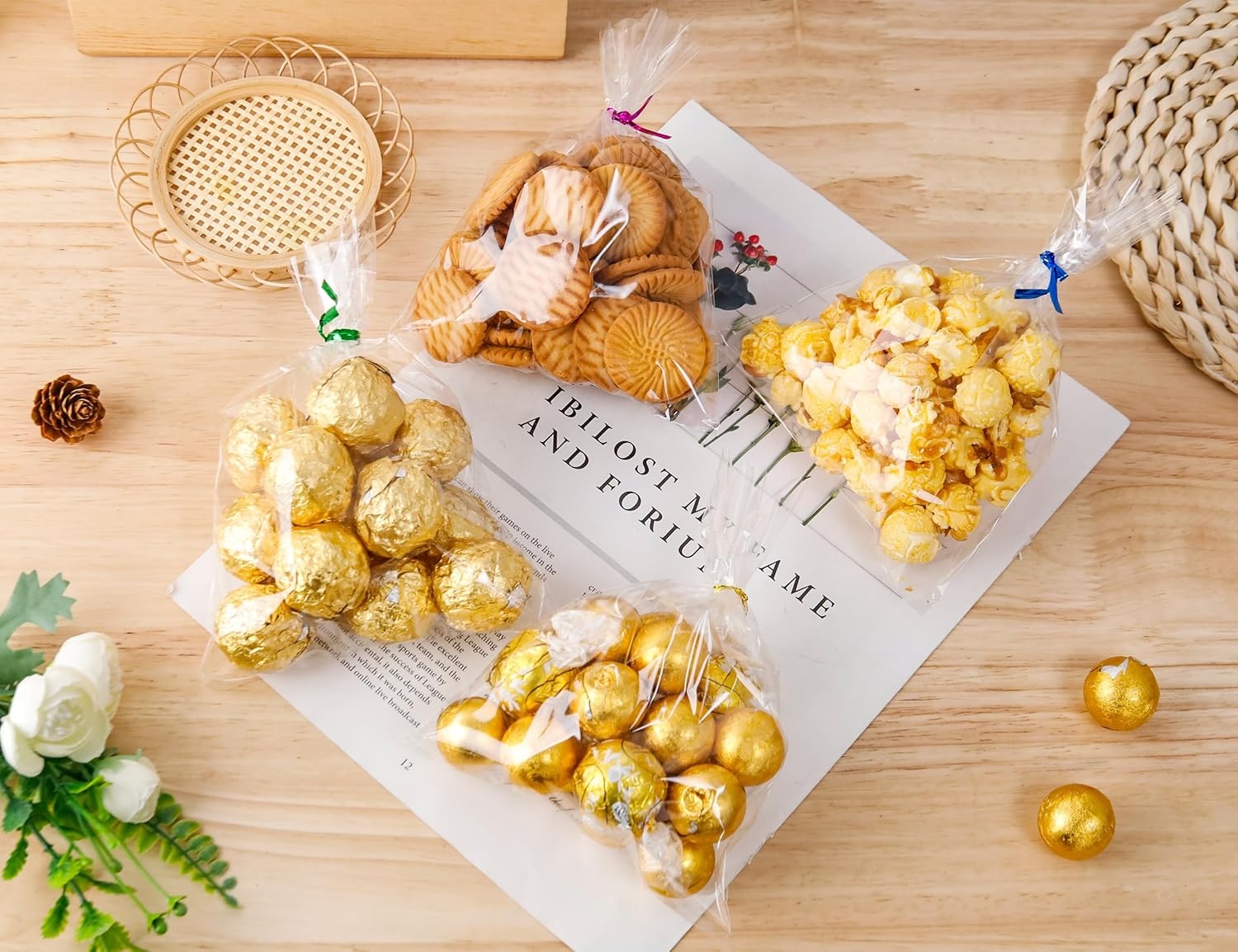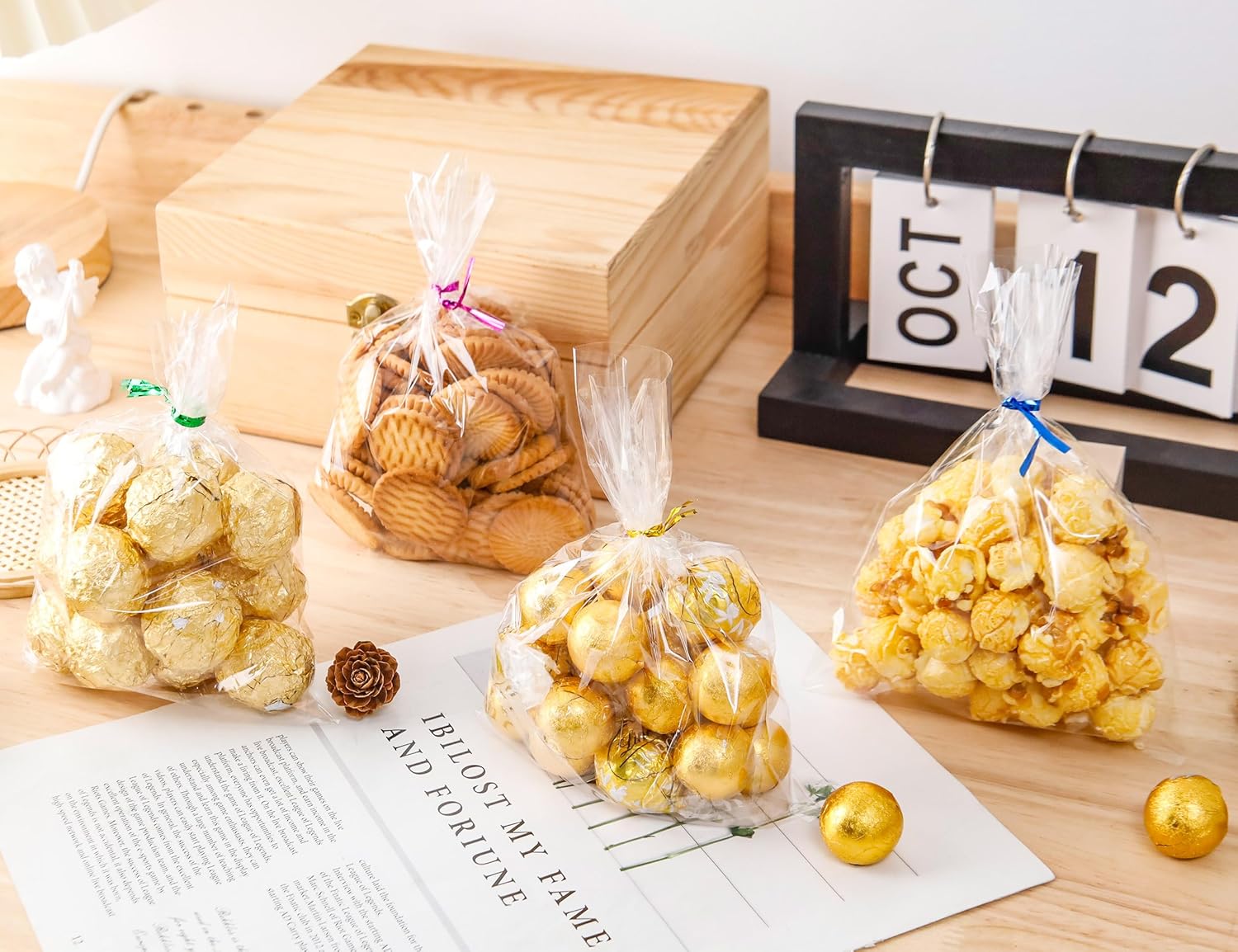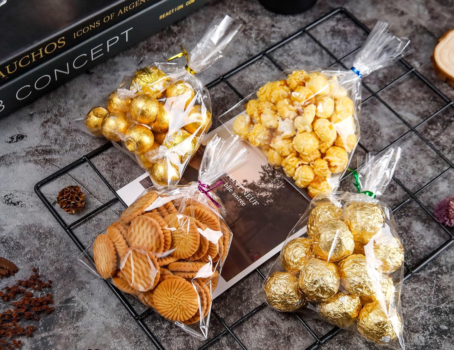 - Easy to Use: Each clear treat bags are easy to be tied with twists and our candy bags with resealable design,you can re-use