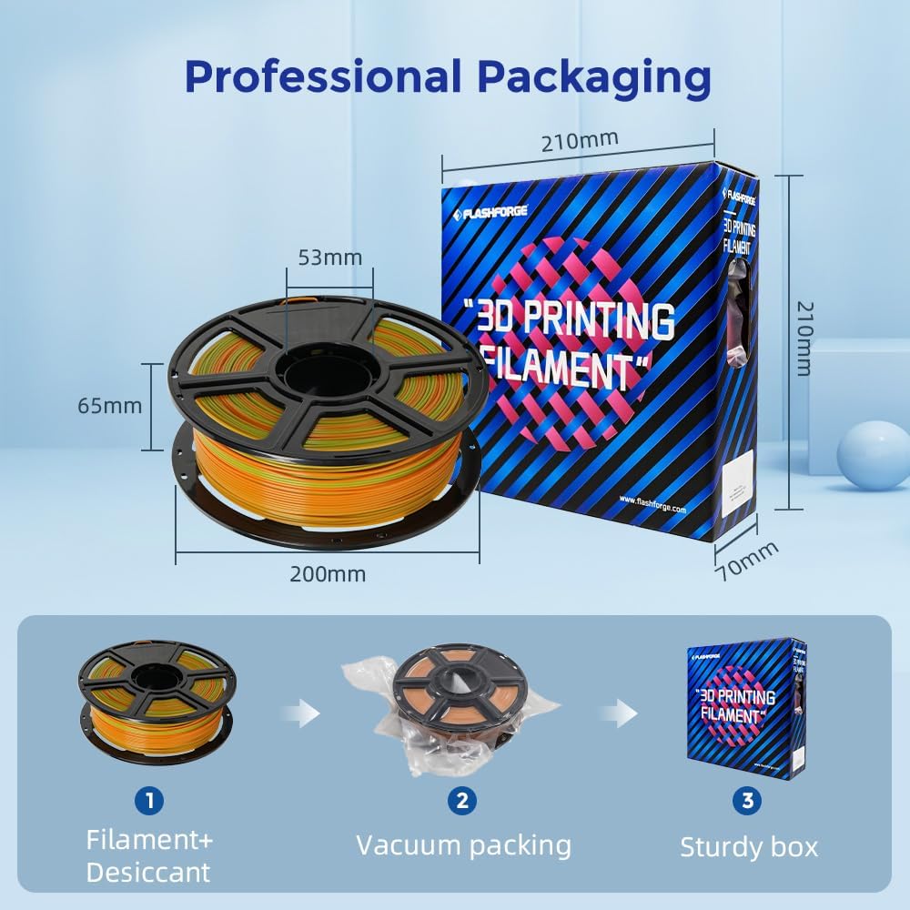 - 【Toughness PLA Filaments】FLASHFORGE premium PLA filaments have the advantages of incredible ease of optimized printing quality and low shrinkage stable printing, which are meeting your demands for printing projects of functional solidworks with higher toughness.