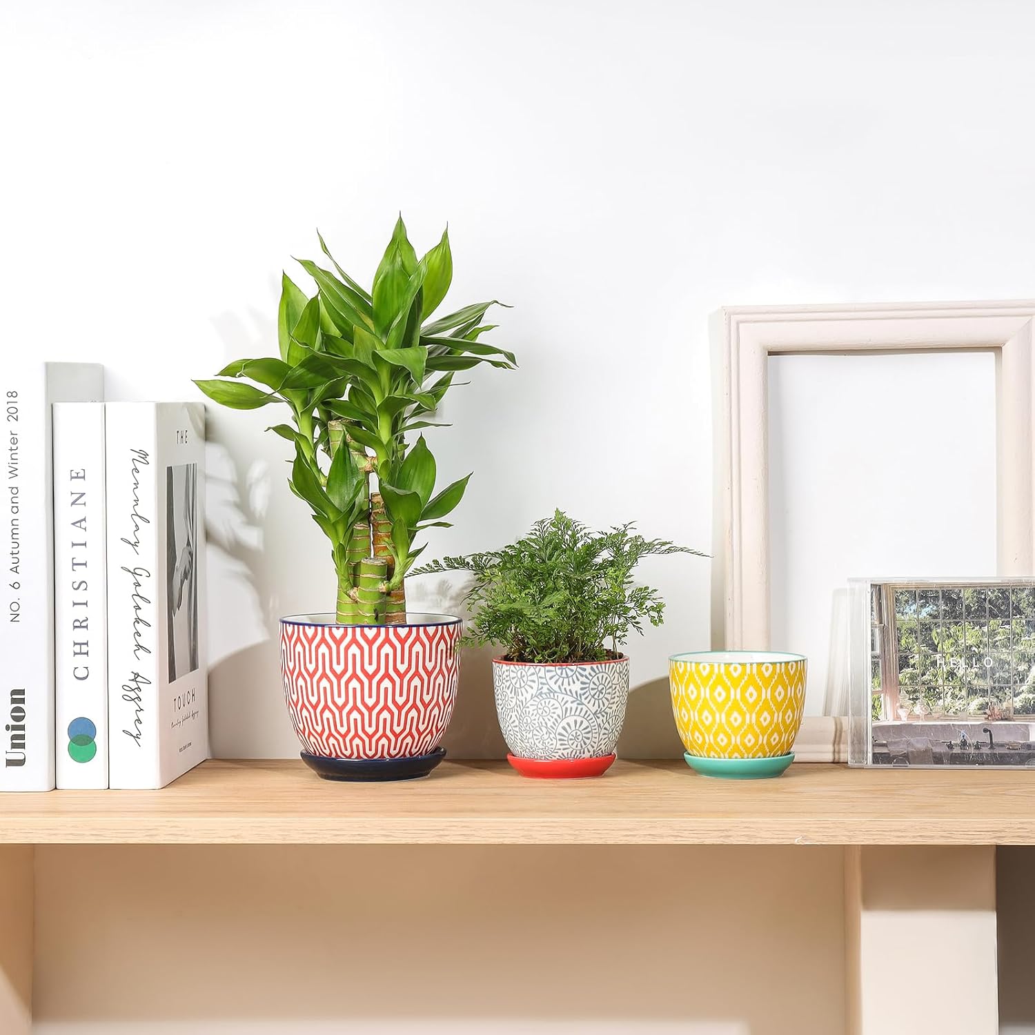 - 【STURDY QUALITY & PACKAGE】These 3.5" plant pots with the gorgeous appearance are made from sturdy ceramic, nontoxic. The complete smooth texture inner & outside makes them clean easily. Each flower pots with saucers are wrapped with thick foam to avoid damage to the flowerpot during transportation.