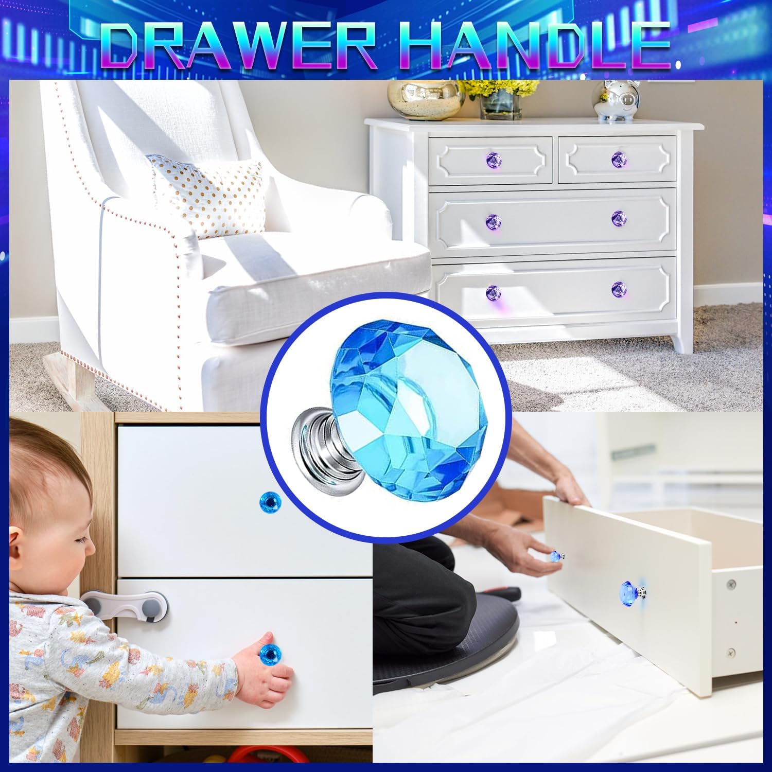 DIY Fairy Wand Garden Beads Stakes Wands Kit,Multiple Color Scheme European Beads Crystal Diamond Tops and 12 or 10 Inch Threaded Rods,Stainless Steel Stakes with Diamond Toppe(Purple+Aqua+Sapphire)