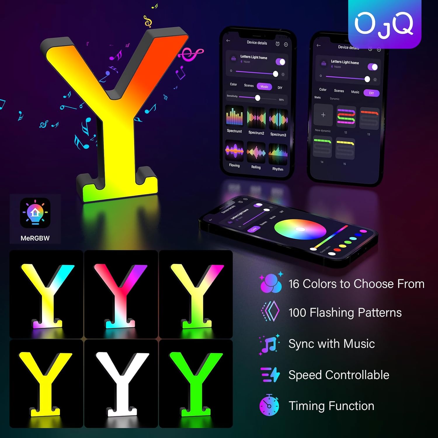 OJQ Light Up Letters LED Letter - Marquee Letters Room Decor Alphabet Letter Music Sync Color Change Colorful - Christmas Birthday Gifts for Girl - Teen Girls Gifts Party Home Wall Decor