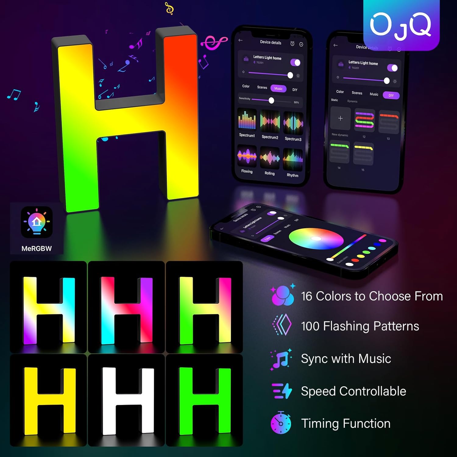 OJQ Light Up Letters LED Letter - Marquee Letters Room Decor Alphabet Letter Music Sync Color Change Colorful - Christmas Birthday Gifts for Girl - Teen Girls Gifts Party Home Wall Decor