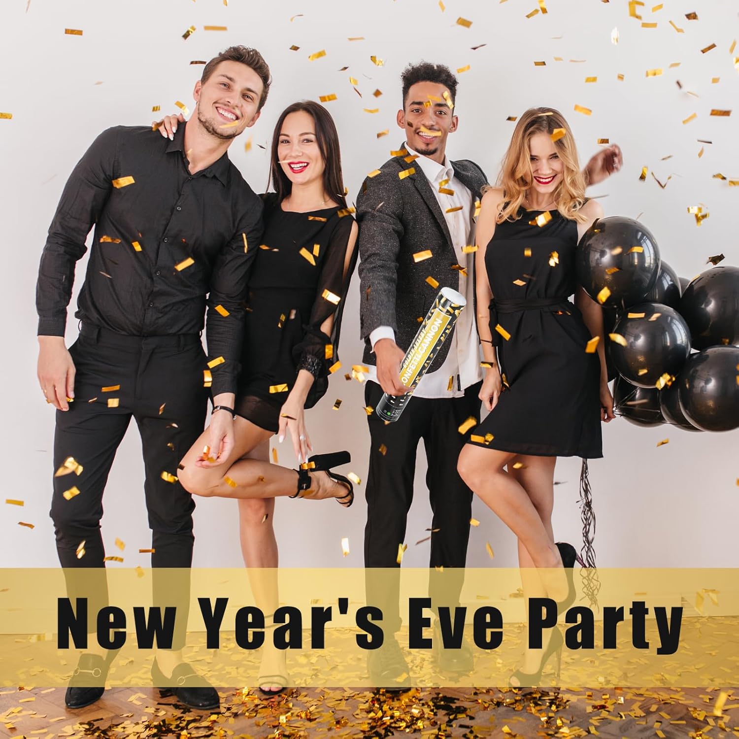 - Shower of Golden Confetti: Our confetti cannon can launch a dazzling shower of gold confetti poppers up to 20-ft high, creating a mesmerizing visual spectacle that's perfect for capturing stunning photos and videos