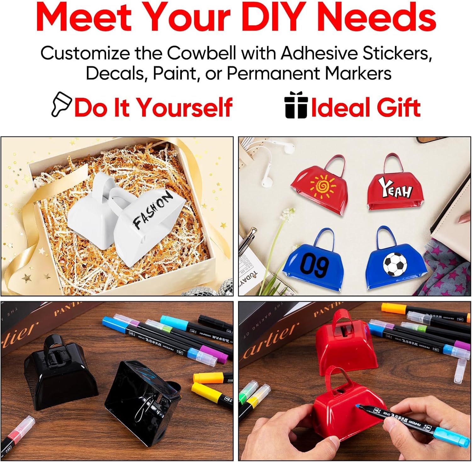 - Ideal Gift: This cowbell noise maker is the perfect Christmas, birthday gift for friends, elderly parents; It has a flat surface and you can make your own unique cow bell by decorating them with paints, markers or stickers