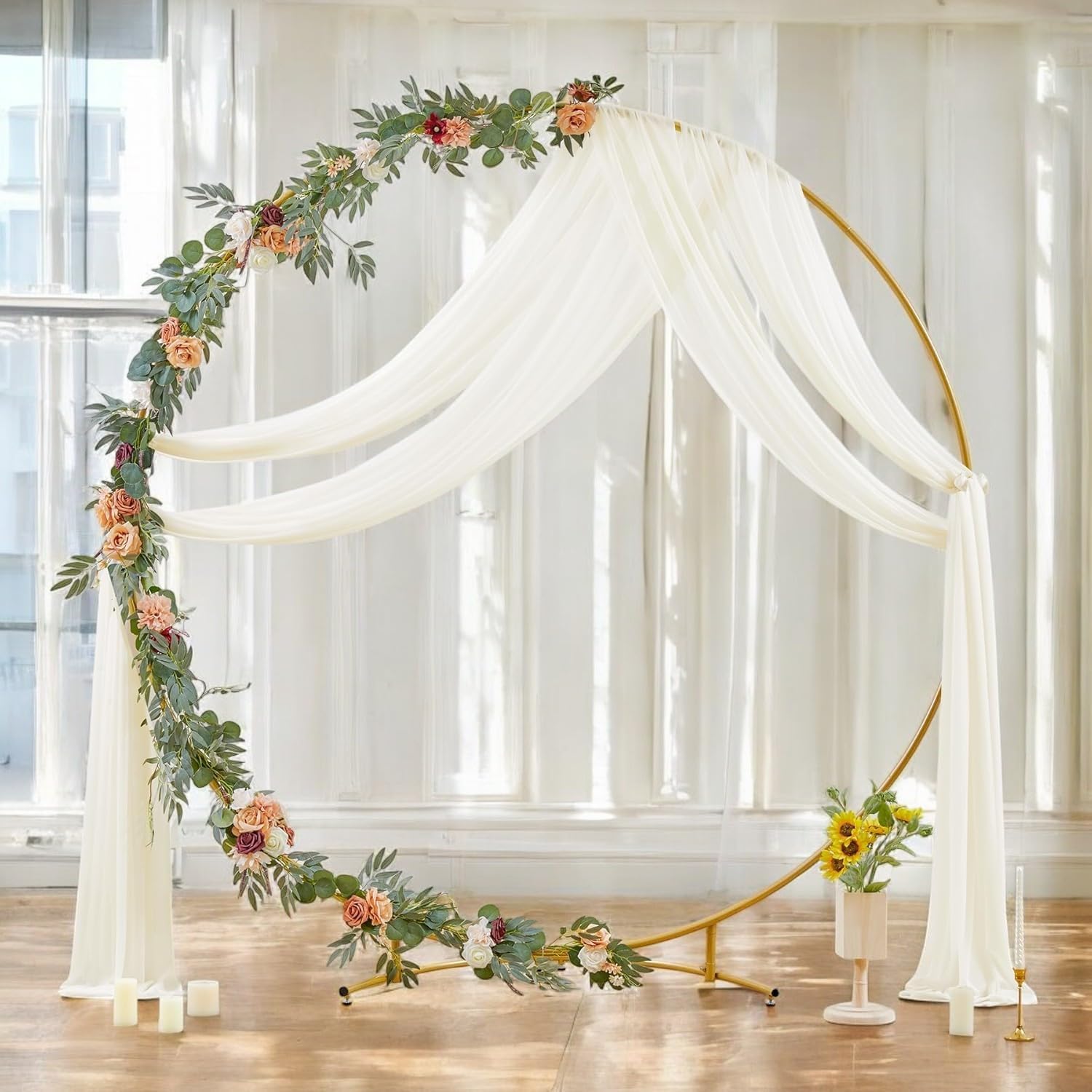 - MULTIPURPOSE DRAPING FABRIC FOR WEDDING : Beautiful wedding arch decorations is perfect for wedding arches, ceremony backdrop, photo backgrounds, and even home interior decoration to add a touch of purity.You can hang some balloon garland, happy birthday banners, glitter star garland, window curtain lights, artificial flowers with stem to add an elegant and romantic vibe. Best wedding decoration gift.