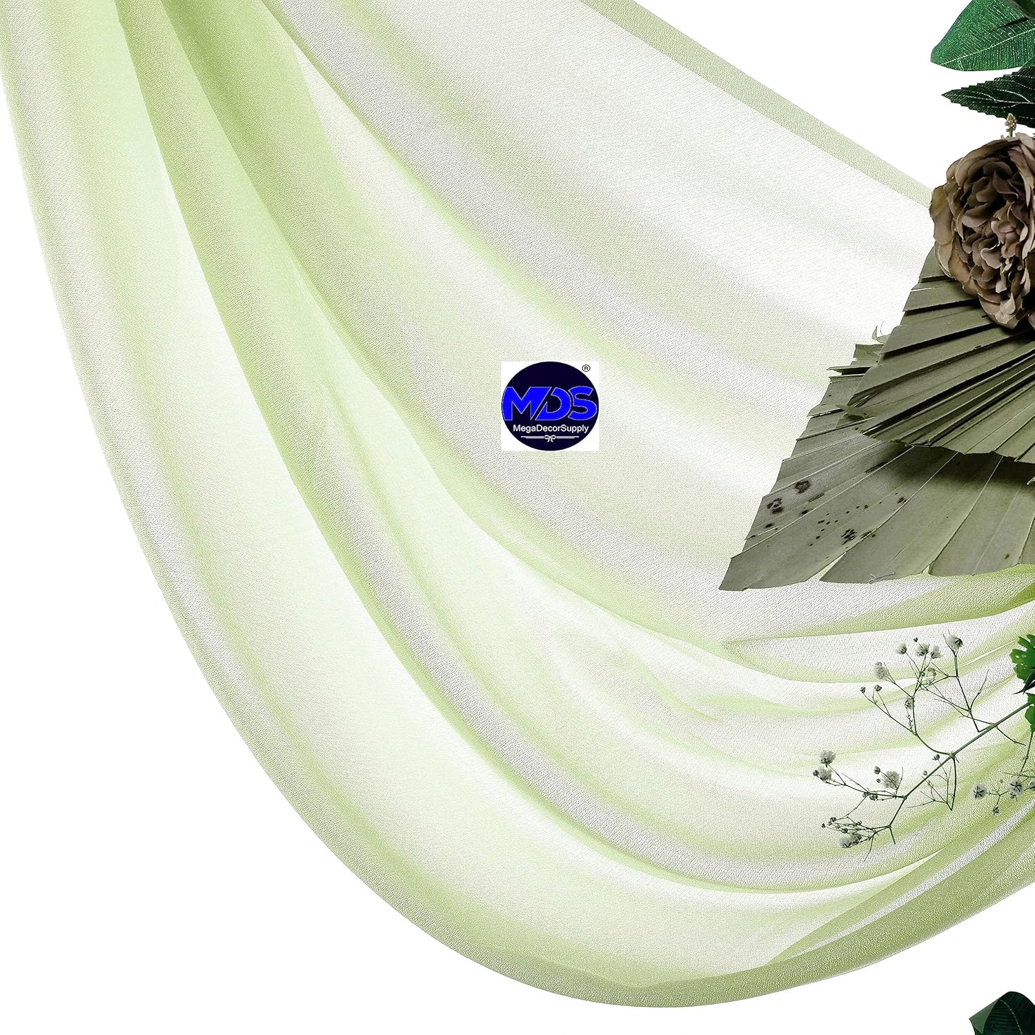 - MATERIALS : This arch panels are made from semi-sheer Chiffon fabric. It's custom fabric with a bit of glitter which looks elegant under lights, very flowy makes this sheer chair sashes more graceful than traditional fabrics. This fabric is smooth, breathable and comfortable, a natural sense of drooping style, designed to resist stains & wrinkles.