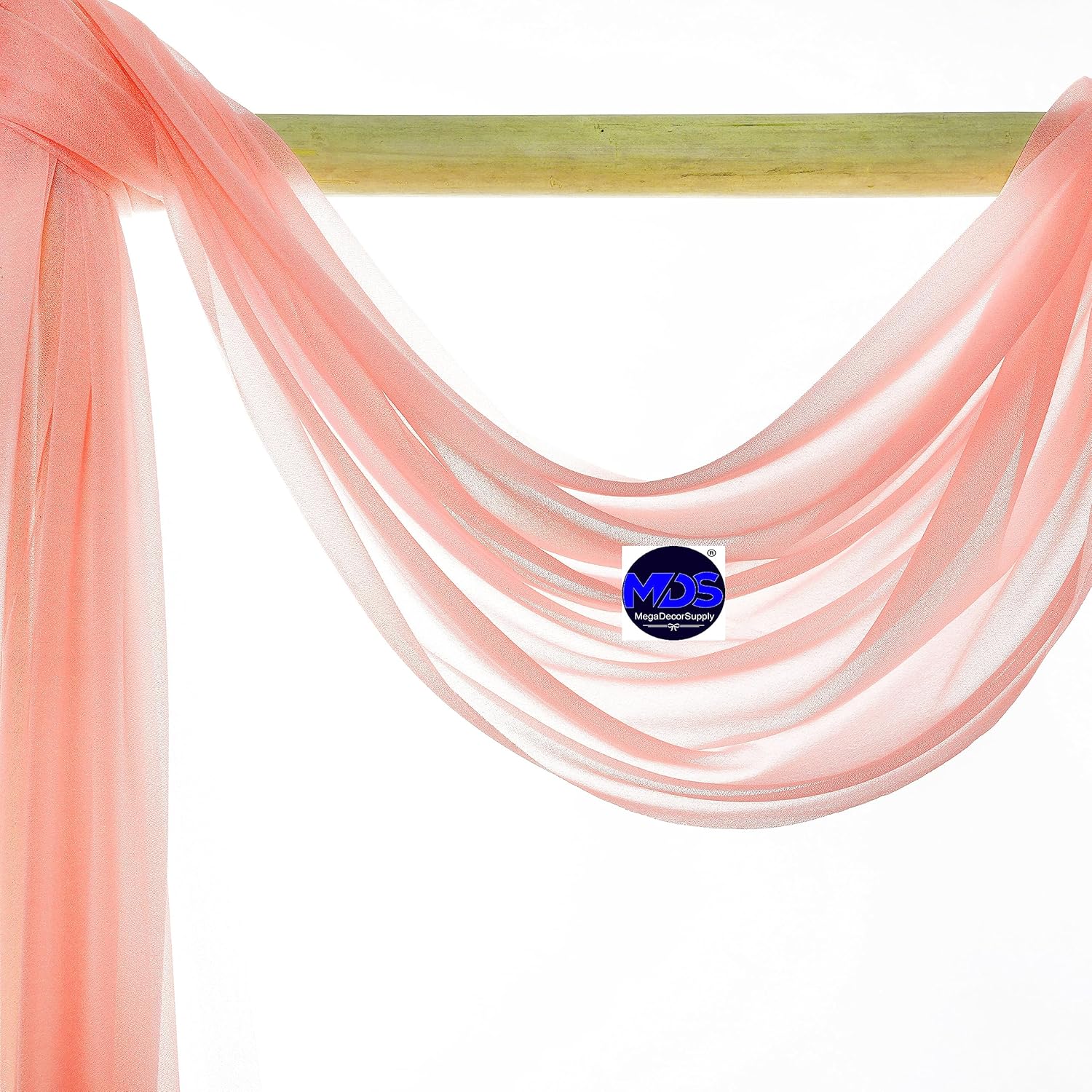 - CONTAINS : Pack of 1 PC. Each panel is 30 Inch (Wide) x 40 Feet (Long). Thermal cutting no seaming technique. Seamless, one-piece design. Each panel is cut entirely from one single piece of fabric. It is perfect length for arch either round or rectangle for a elegant puddle drop. Soft and overhanging pendants make the wedding decorations more popular.This chiffon drapery backdrop can help your party to create a warm and elegant scenes.