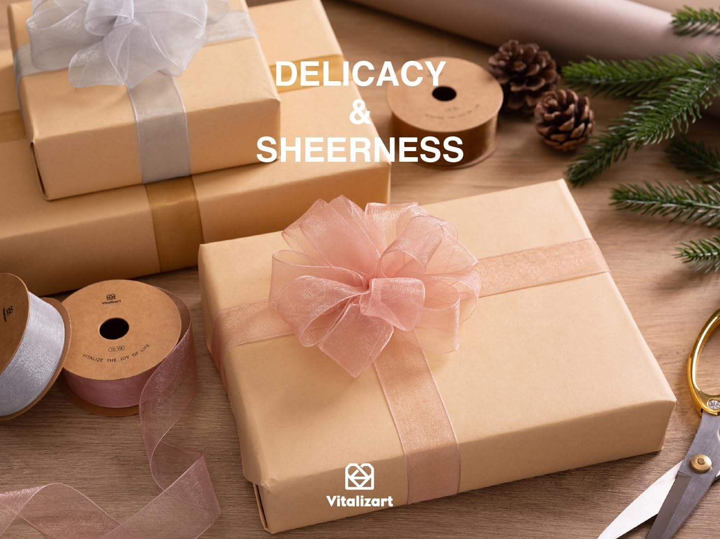 - Beautiful sheer ribbon with a touch of delicacy in its translucent appearance.