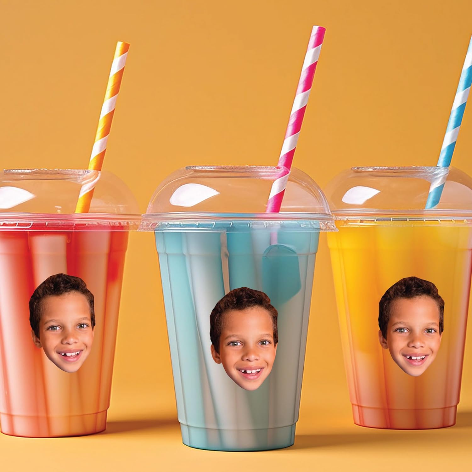 - Fun Face Cut-Out Stickers includes 24 paper die cut stickers using ONE custom photo. Great for birthday parties, sports events, graduations, and more, these shaped stickers are a fun party accessory that will brighten the mood.
