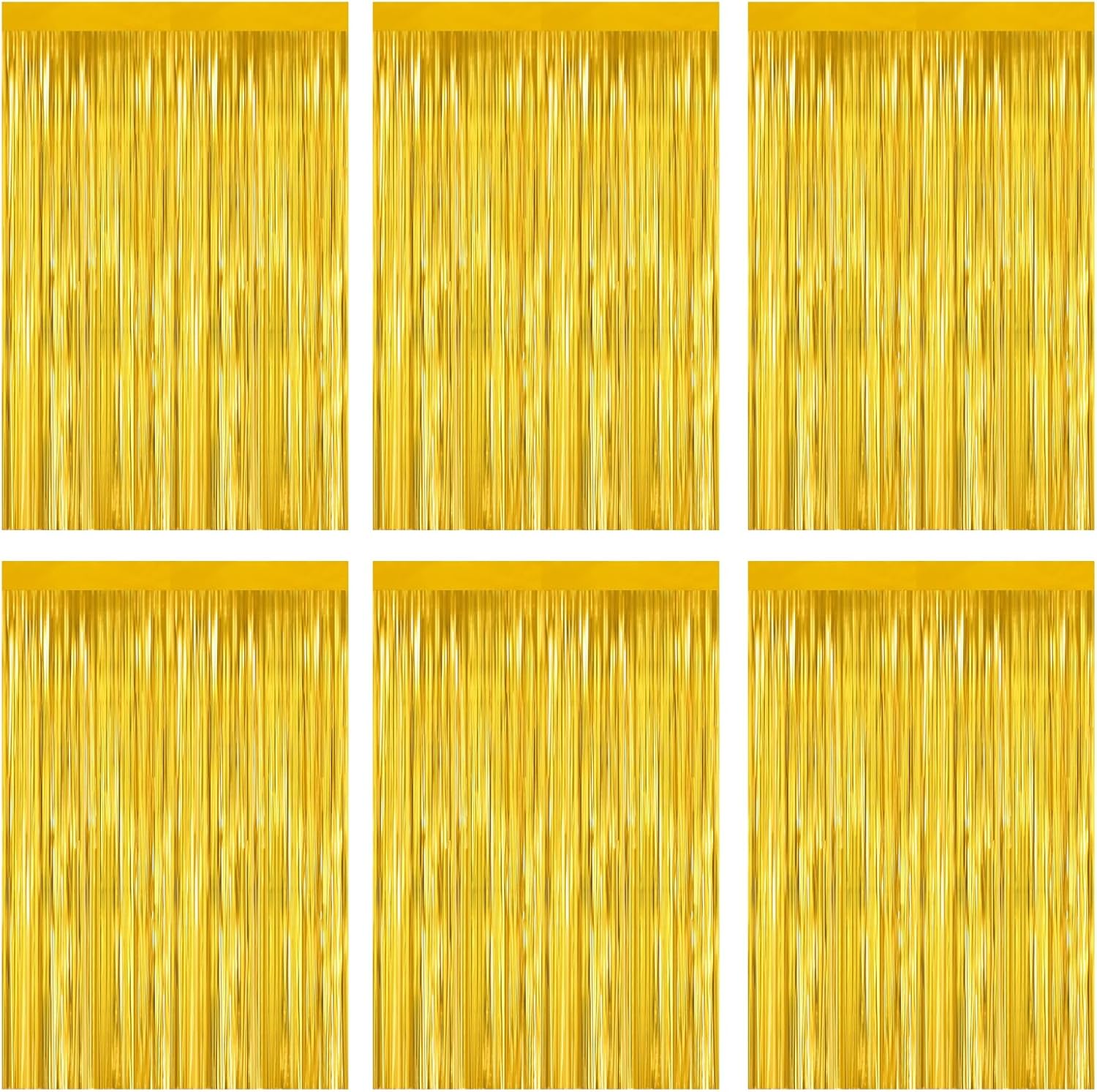 Gold Foil Fringe Curtain 3.3×8.3FT 6 Packs, Metallic Tinsel Curtains Party Streamers for Birthday Graduation Baby Shower Decoration (6pcs,3.3FT×8.3FT, Gold)