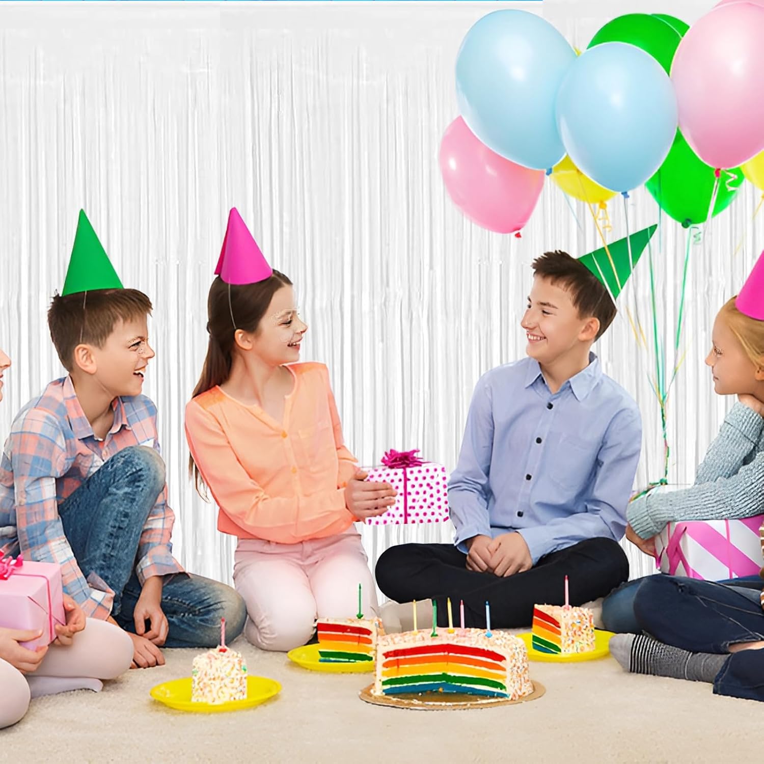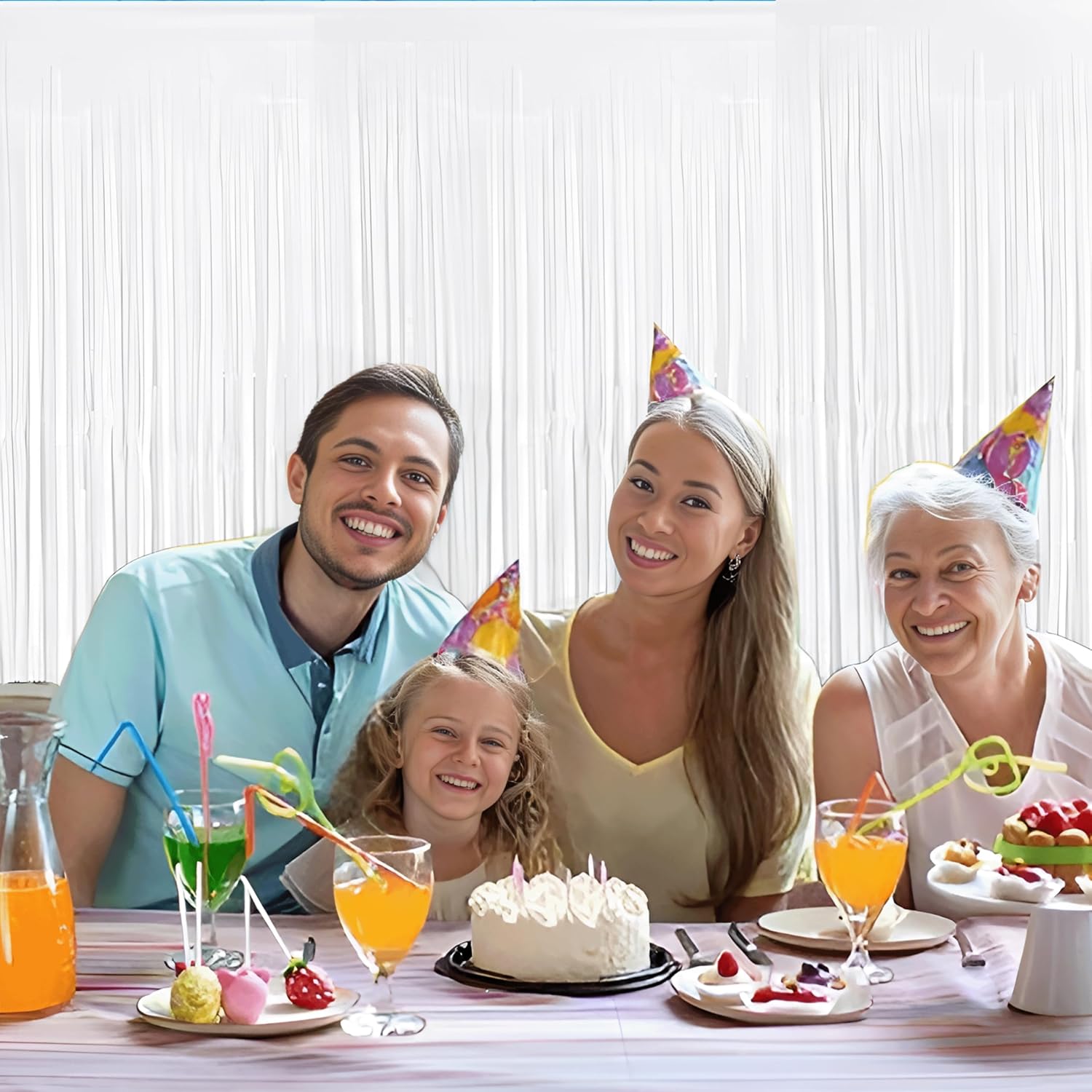 White Foil Fringe Curtain 3.3×8.3FT 6 Packs, Metallic Tinsel Curtains Party Streamers for Birthday Graduation Baby Shower Decoration (6pcs,3.3FT×8.3FT, White)