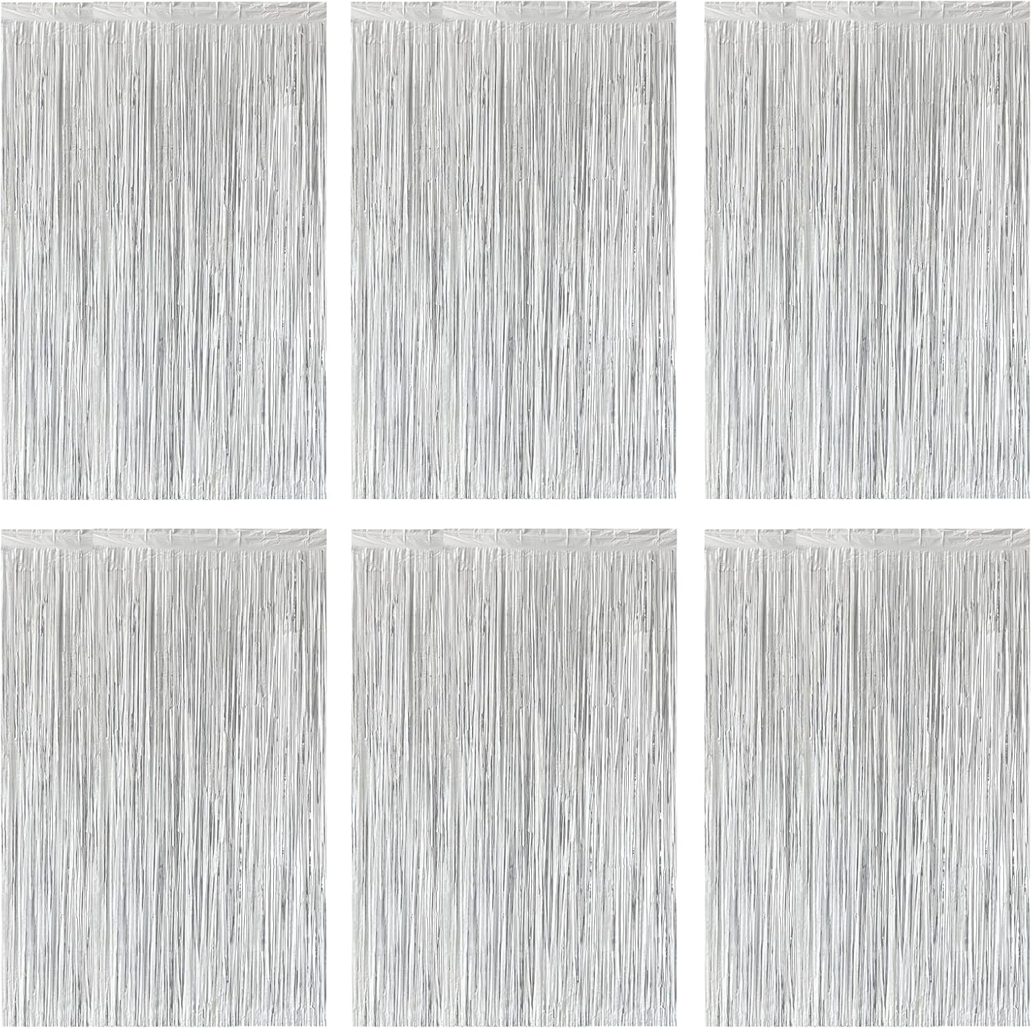 Silver Foil Fringe Curtain 3.3×8.3FT 6 Packs, Metallic Tinsel Curtains Party Streamers for Birthday Graduation Baby Shower Decoration (6pcs,3.3FT×8.3FT, Silver)