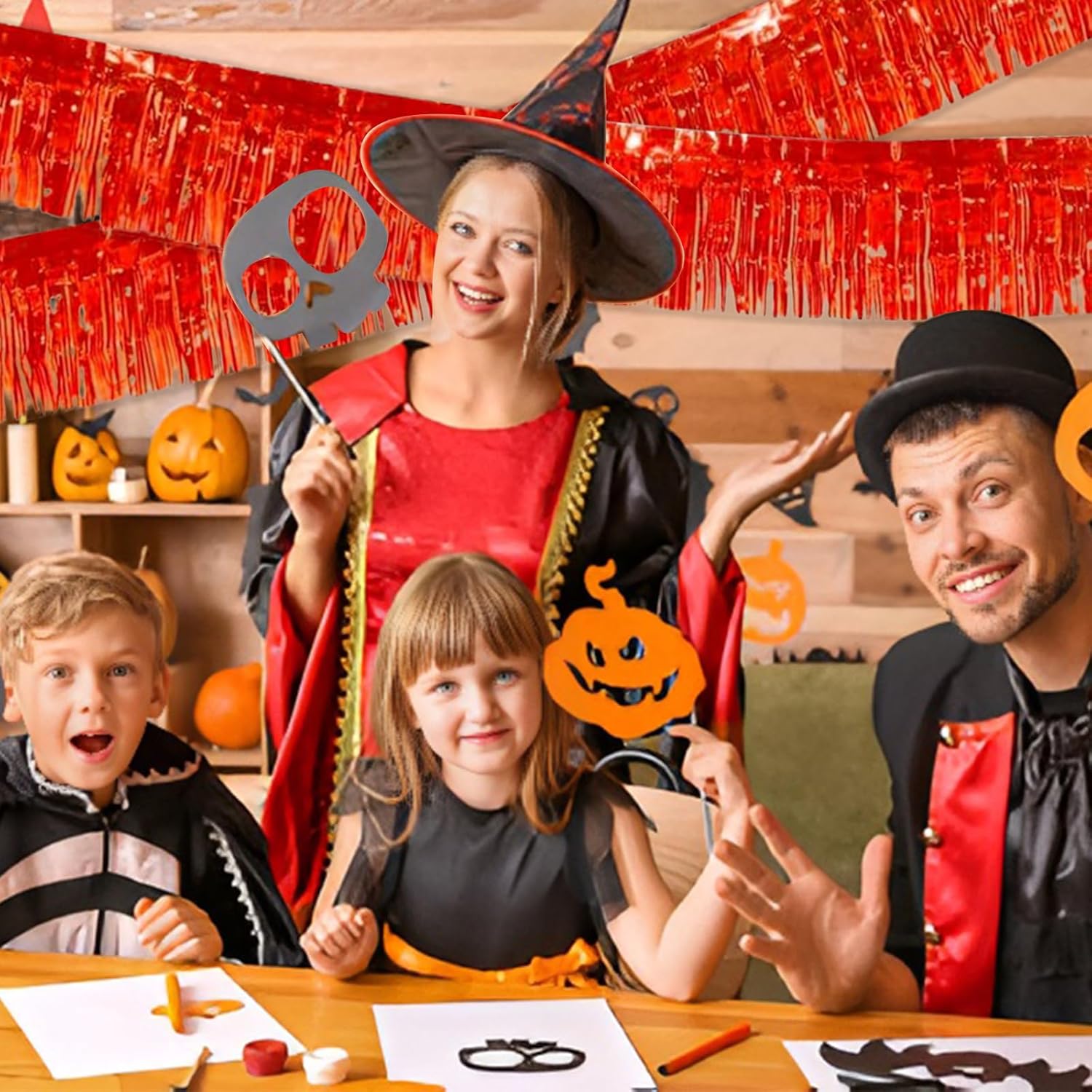 Red Foil Fringe Garland 10FT 6packs, Metallic Foil Tinsel Fringe Banners for Parade Float Decorations Wedding, Birthday Party Graduation (six Red)