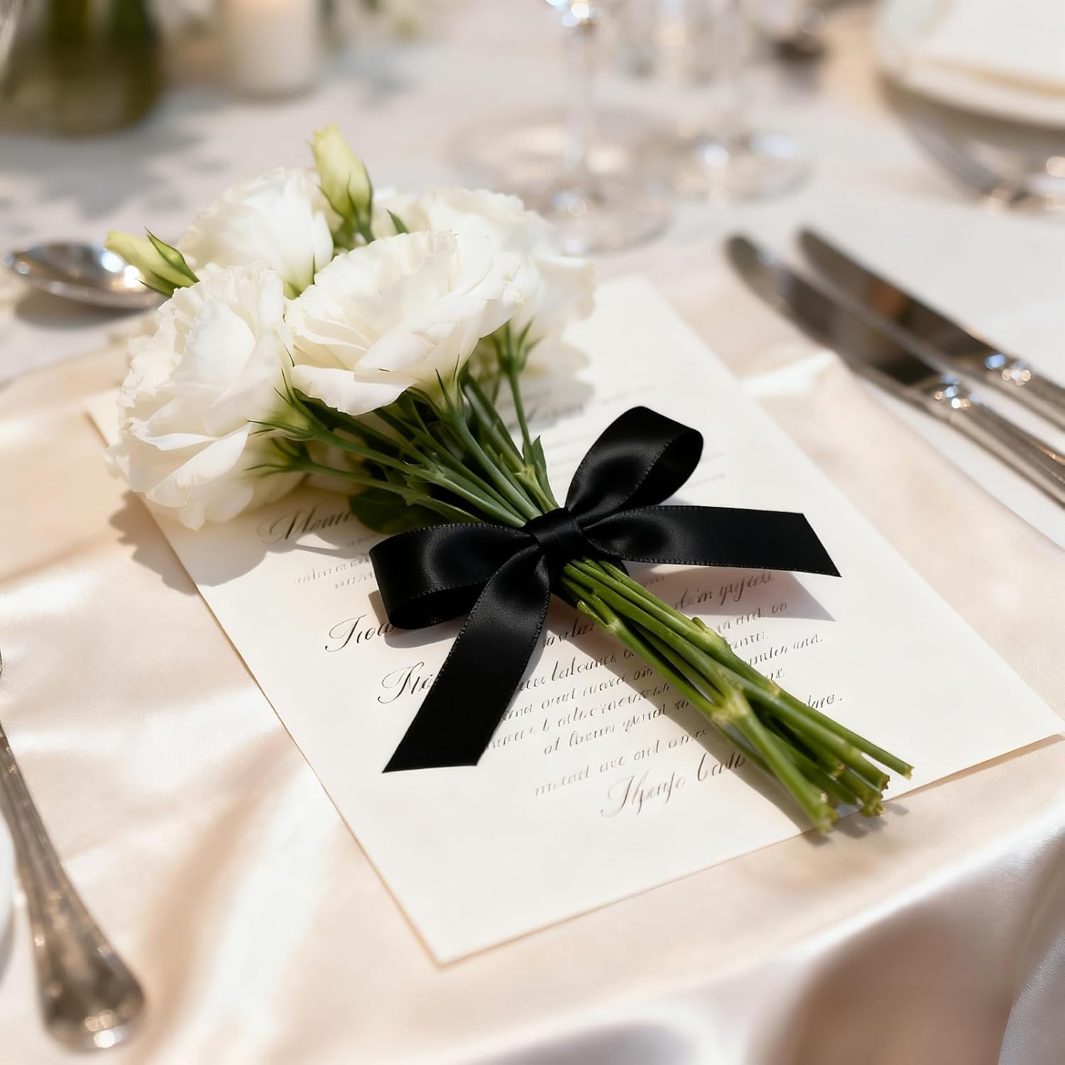- 【High Quality】: Our fabric satin ribbon is made of 100% high-quality polyester. The single face ribbon for gift wrapping is Black color and has smooth texture which is easy to cut and use.