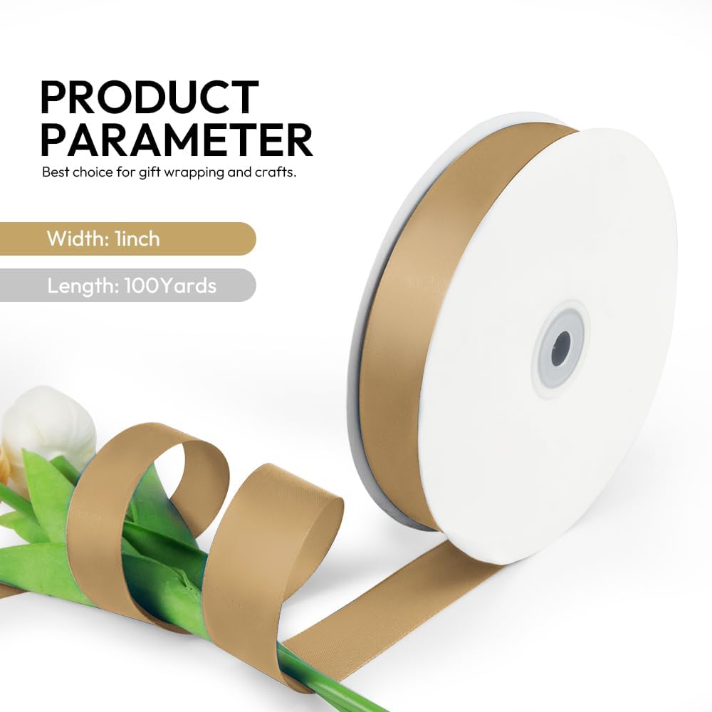 - 【High Quality】: Our fabric satin ribbon is made of 100% high-quality polyester. The single face ribbon for gift wrapping is Champagne Gold color and has smooth texture which is easy to cut and use.