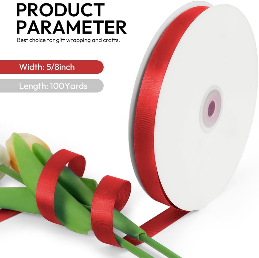 - 【Ribbon Dimensions】: Each satin ribbon spool is 5/8 inch width with total length is 100 yards, which has enough amount for your daily need. The gift wrapping ribbon can be easily stored and the spool is space-saving.