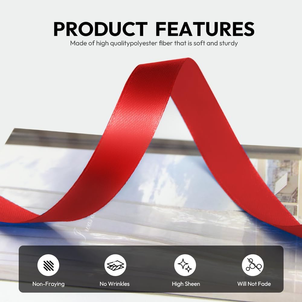 - 【High Quality】: Our fabric satin ribbon is made of 100% high-quality polyester. The single face ribbon for gift wrapping is Red color and has smooth texture which is easy to cut and use.