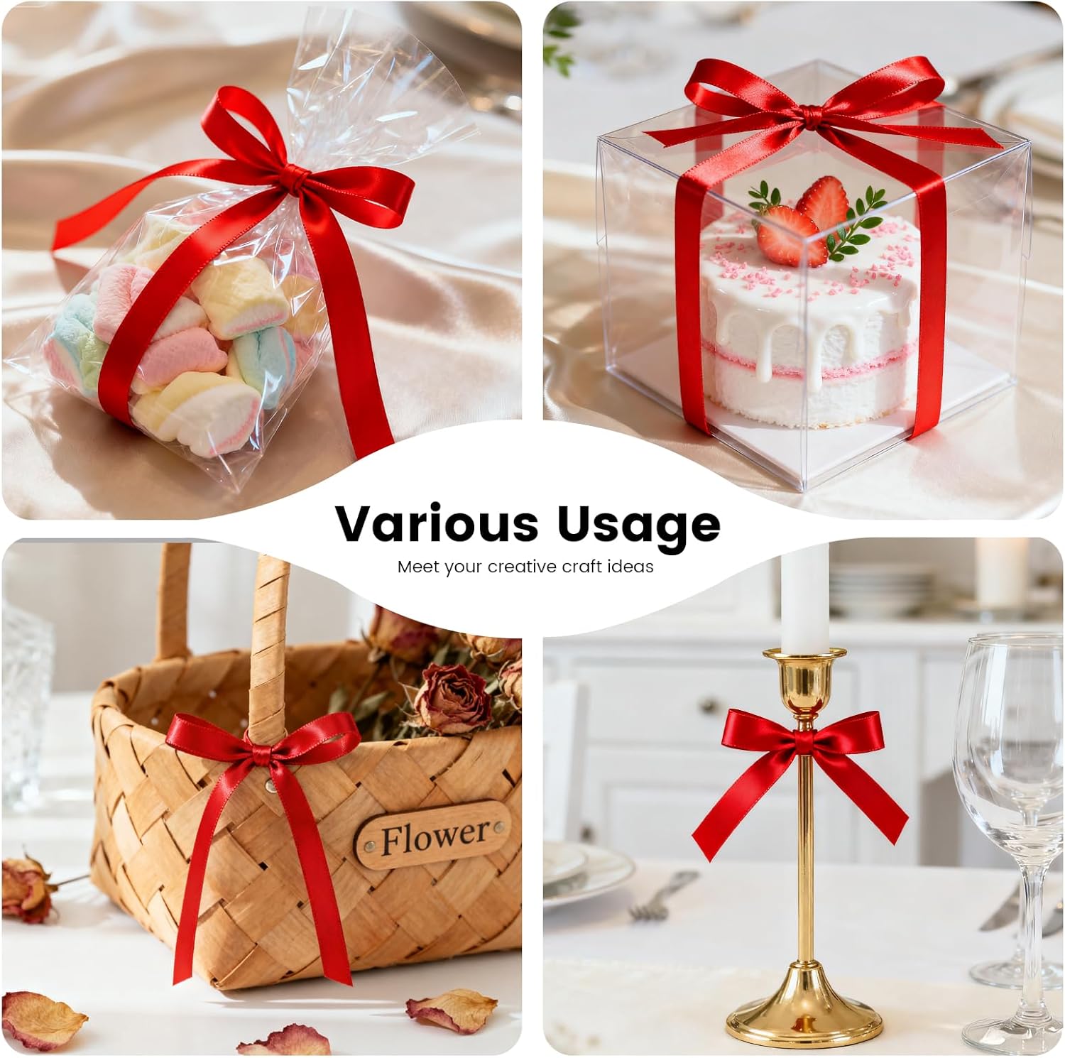 - 【Gift Wrapping Accessories】: The satin ribbon for wrapping presents is constructed with dense and sturdy weave which can help you accomplish multiple projects for different festival events, such as Valentine's Day, St.Patrick's Day, Easter Day, Christmas, Thanksgiving, Halloween, Mother’s & Father’s Day, Children’s Day and more.