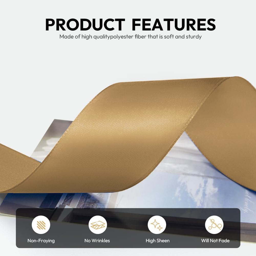 - 【High Quality】: Our fabric satin ribbon is made of 100% high-quality polyester. The single face ribbon for gift wrapping is Champagne Gold color and has smooth texture which is easy to cut and use.