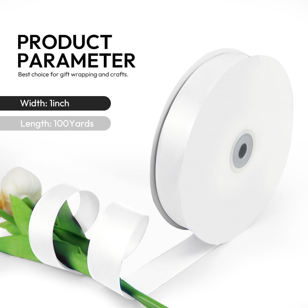1 Inch 100 Yards Satin Ribbon White, Solid Color Fabric Ribbon for Gift Wrapping, Wedding, Polyester Gift Ribbon for Birthday Party Decoration, Craft, Hair, Floral, Sewing