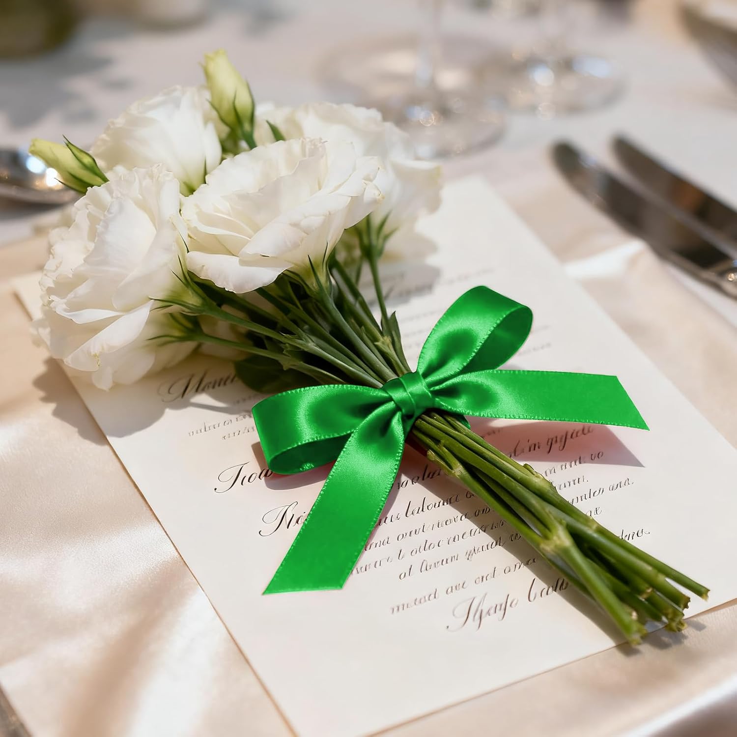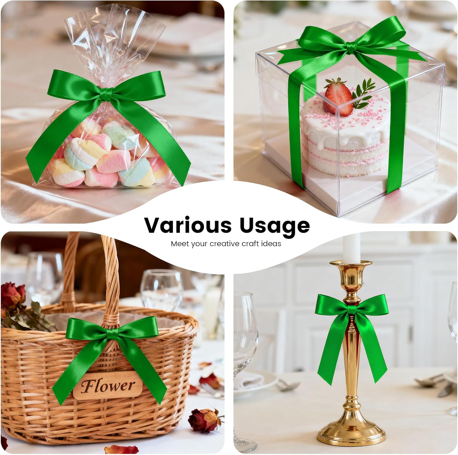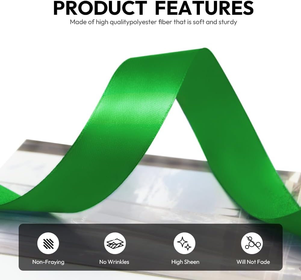 - 【High Quality】: Our fabric satin ribbon is made of 100% high-quality polyester. The single face ribbon for gift wrapping is Green color and has smooth texture which is easy to cut and use.