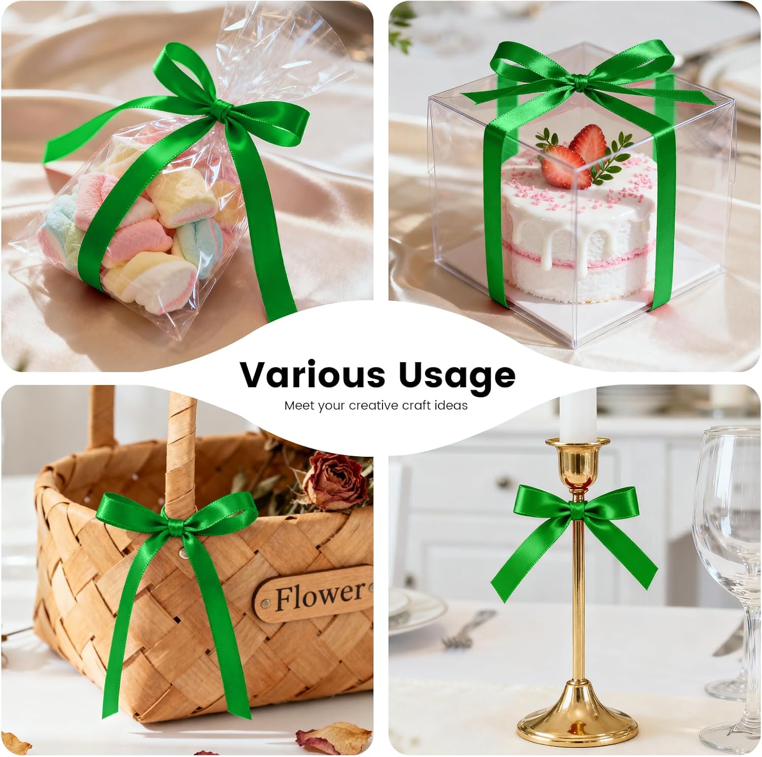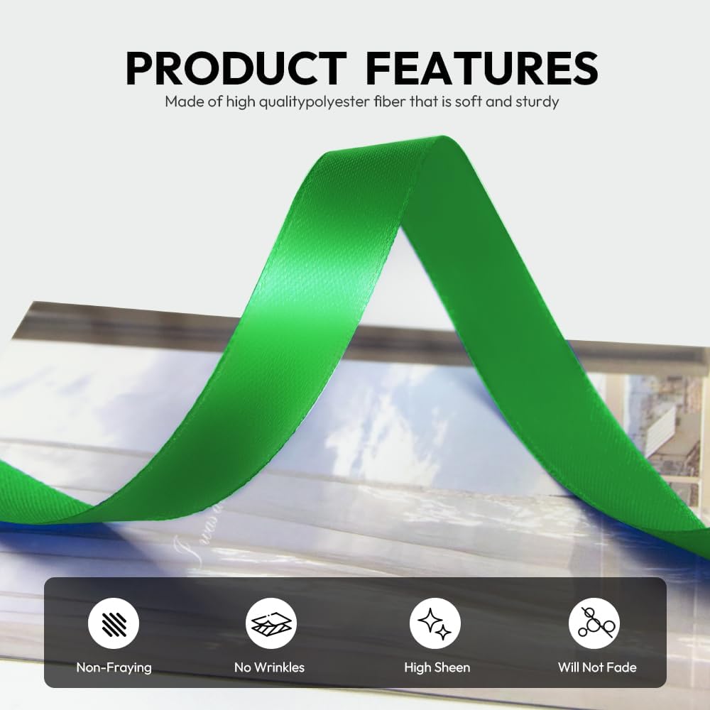 - 【High Quality】: Our fabric satin ribbon is made of 100% high-quality polyester. The single face ribbon for gift wrapping is Green color and has smooth texture which is easy to cut and use.