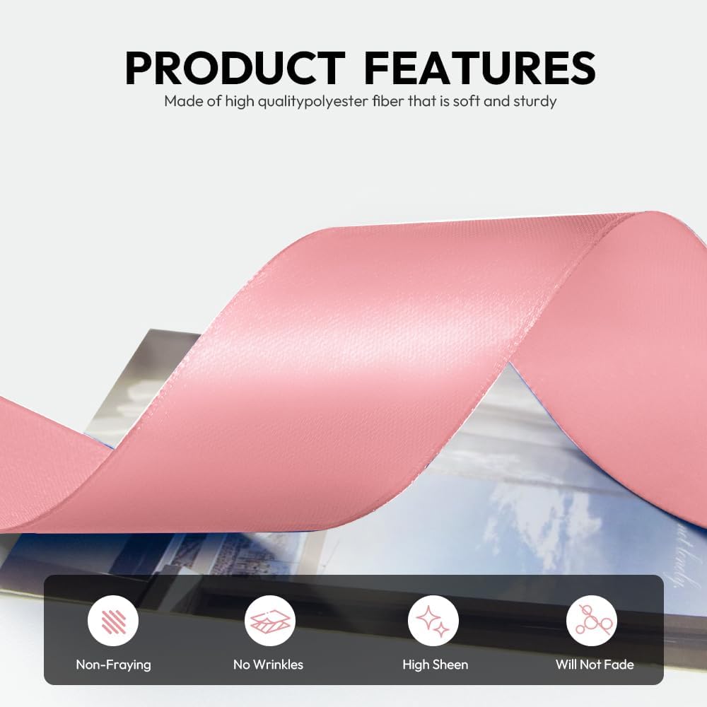 - 【High Quality】: Our fabric satin ribbon is made of 100% high-quality polyester. The single face ribbon for gift wrapping is Dusty Pink color and has smooth texture which is easy to cut and use.